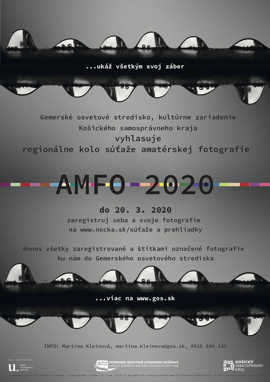 Gemerské osvetové stredisko (GOS) v Rožňave, kultúrne zariadenie Košického samosprávneho kraja, už tradične vyhlasuje a organizuje regionálne kolo celoštátnej postupovej súťaže amatérskej fotografie AMFO 2020.