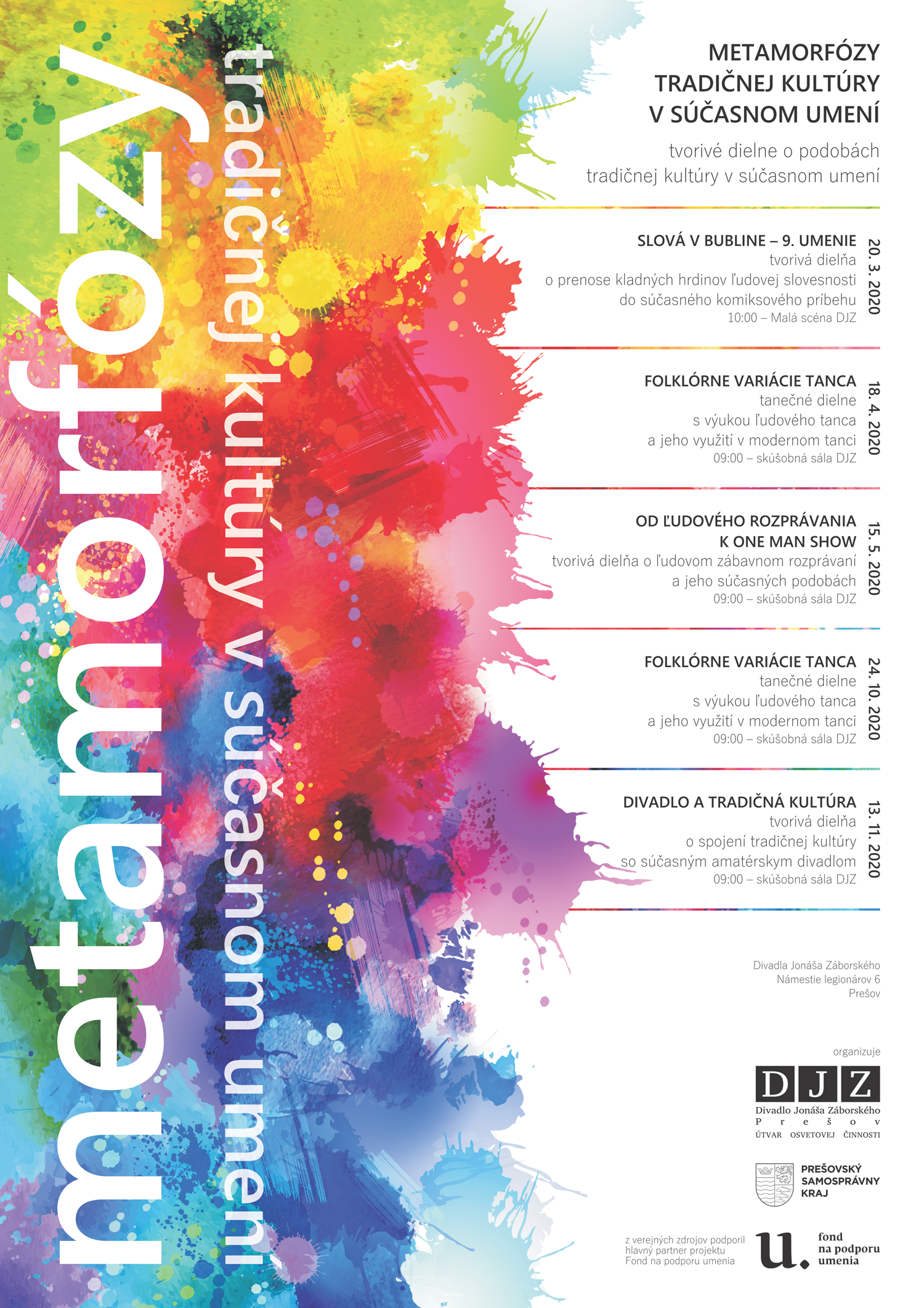 Projekt METAMORFÓZY TRADIČNEJ KULTÚRY V SÚČASNOM UMENÍ je edukačné podujatie, sprostredkujúce čo najširší rozsah informácií, poznatkov o možnosti implementácie tradičnej kultúry do súčasného umenia /tanec, výtv. umenie,tvorivá dramatika/ ako aj poukázanie na ovplyvňovanie moderného umenia tradičnou kultúrou. Prvou z pripravovaných aktivít je tvorivá dielňa SLOVÁ V BUBLINE – 9. UMENIE-UMENIE, zameraná na spojenie ľudovej slovesnosti s modernou výtvarnou tvorbou detí – tvorbou komiksových príbehov