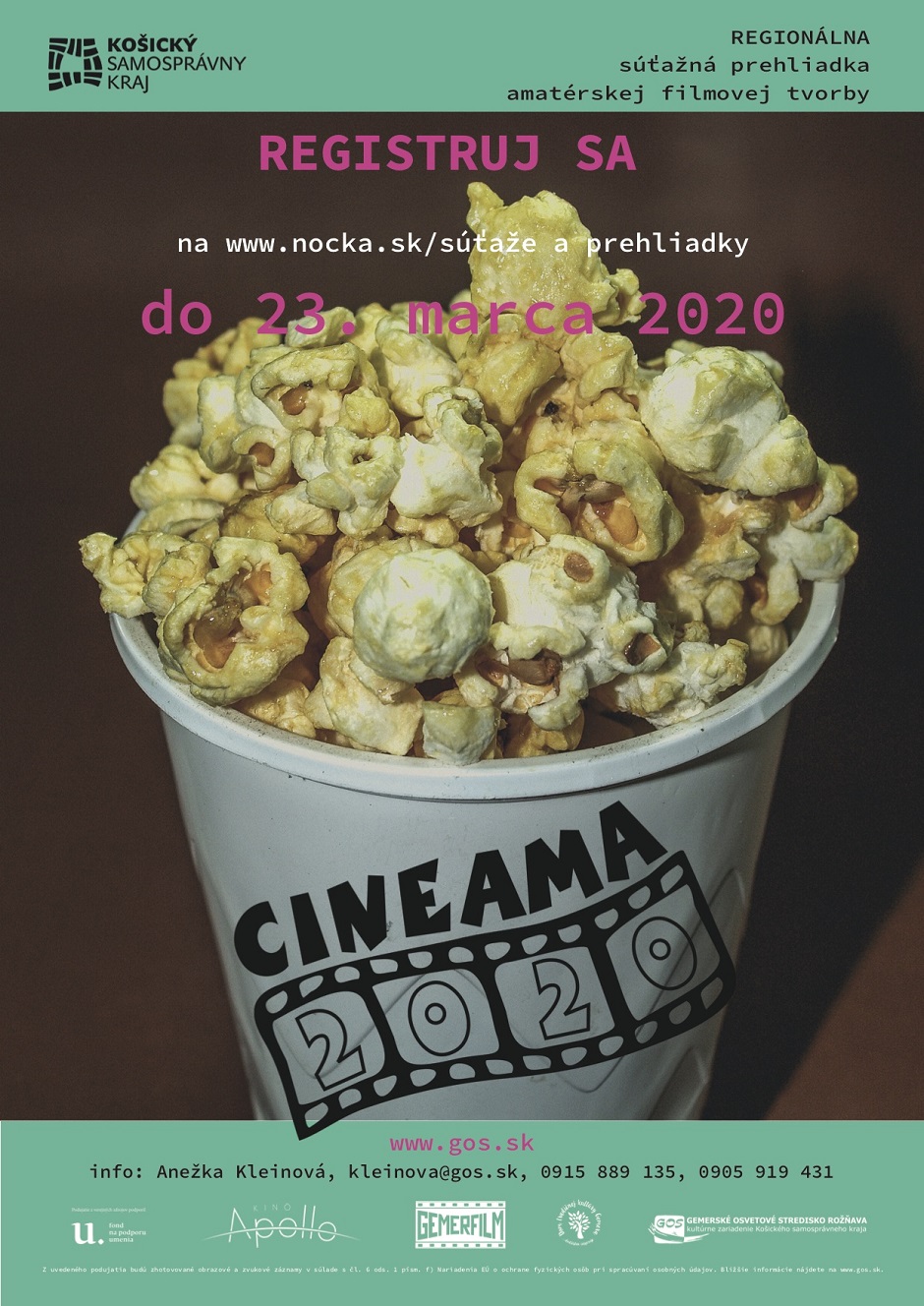 Gemerské osvetové stredisko (GOS), kultúrne zariadenie Košického samosprávneho kraja, vyhlasuje regionálne kolo celoštátnej súťažnej prehliadky amatérskej filmovej tvorby Cineama 2020 pre okres Rožňava. Súťaž vyhľadáva talentovaných tvorcov, rozvíja ich kreativitu a poskytuje možnosť prezentácie a konfrontácie v oblasti vizuálneho umenia.