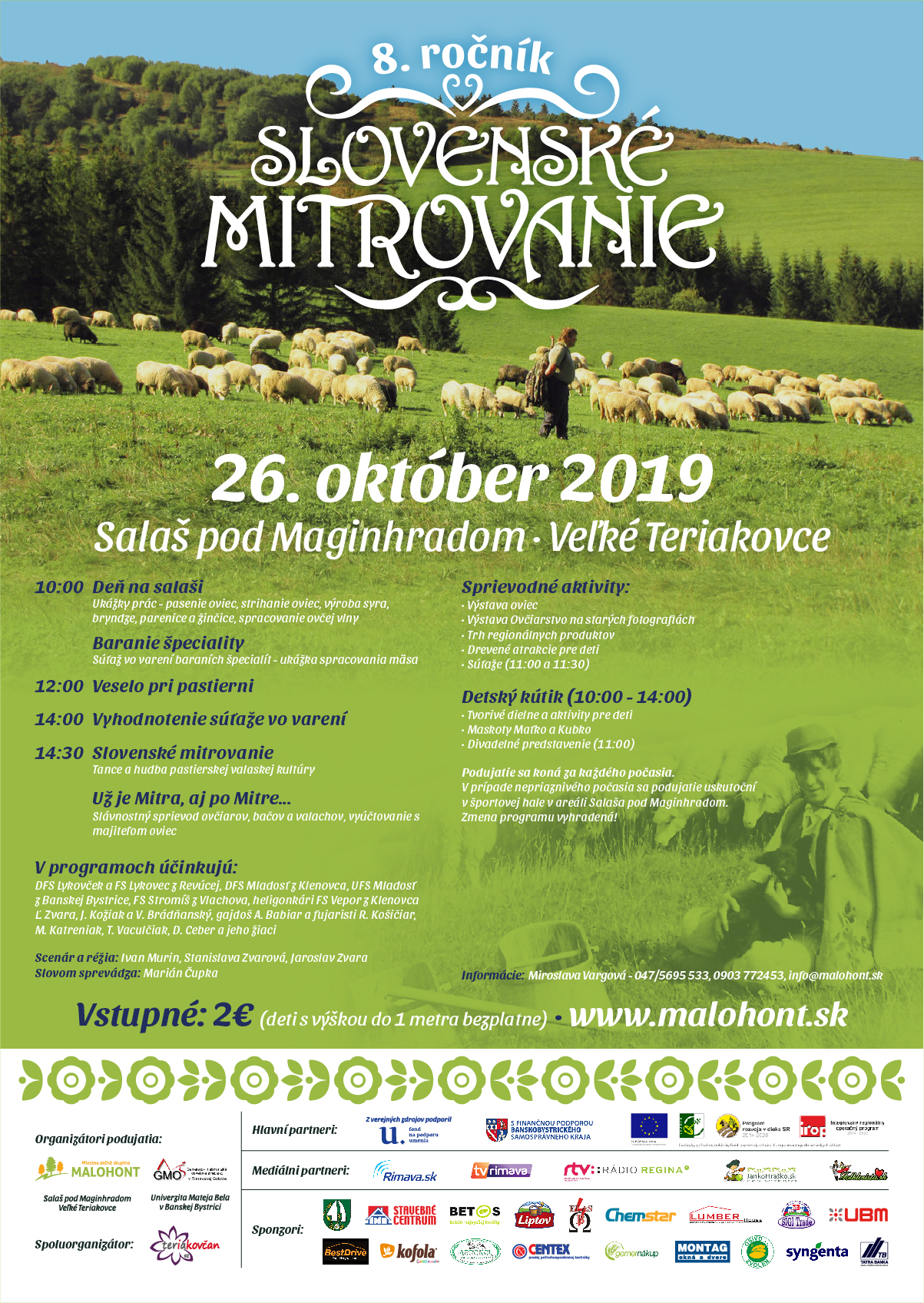 Ukončenie pastierskej sezóny nazývané mitrovanie sa viaže k 26. októbru, na svätého Demetera alebo Mitra, kedy si tento starý zvyk pripomenieme v obci Veľké Teriakovce už po ôsmykrát. Návštevníkov podujatia čakajú ukážky prác na salaši, tance a hudba pastierskej valaskej kultúry, baranie špeciality, trh regionálnych produktov či aktivity pre deti a nebudú chýbať ani najznámejší valasi Maťko a Kubko.