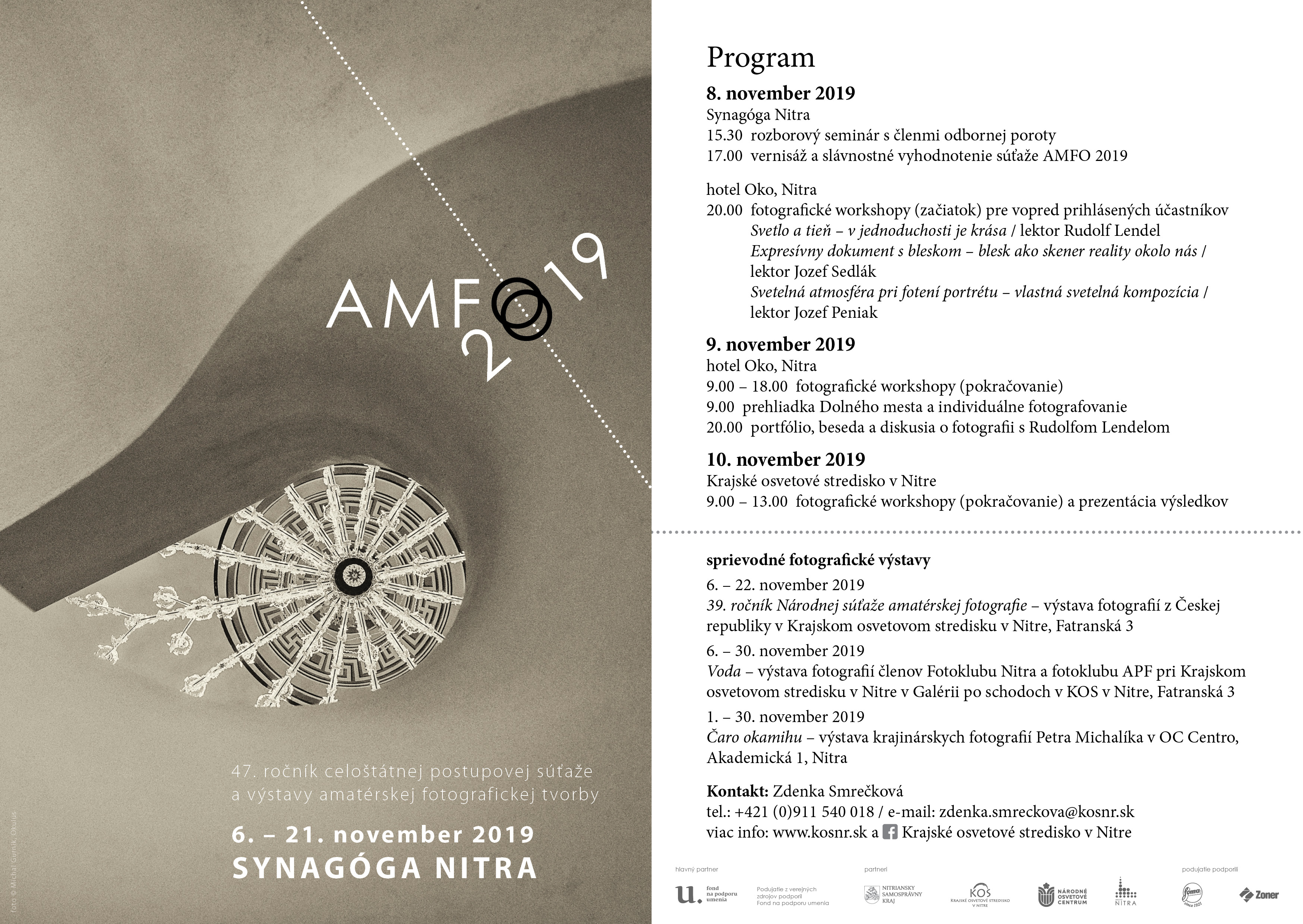 AMFO 2019 - 47. ročník je celoštátna postupová súťaž a výstava amatérskej fotografickej tvorby. Autori sú hodnotení v čiernobielej, vo farebnej fotografii, v multimediálnej prezentácii a v kategórii seriály a cykly. Porotou vybrané diela sa prezentujú na výstave v Synagóge v Nitre. K výstave je vydaný katalóg. Súčasťou je i vzdelávacia časť, ktorá prispieva k nadobúdaniu a rozvoju vedomostí, k vzájomnej konfrontácii, odovzdávaniu a výmene skúseností .