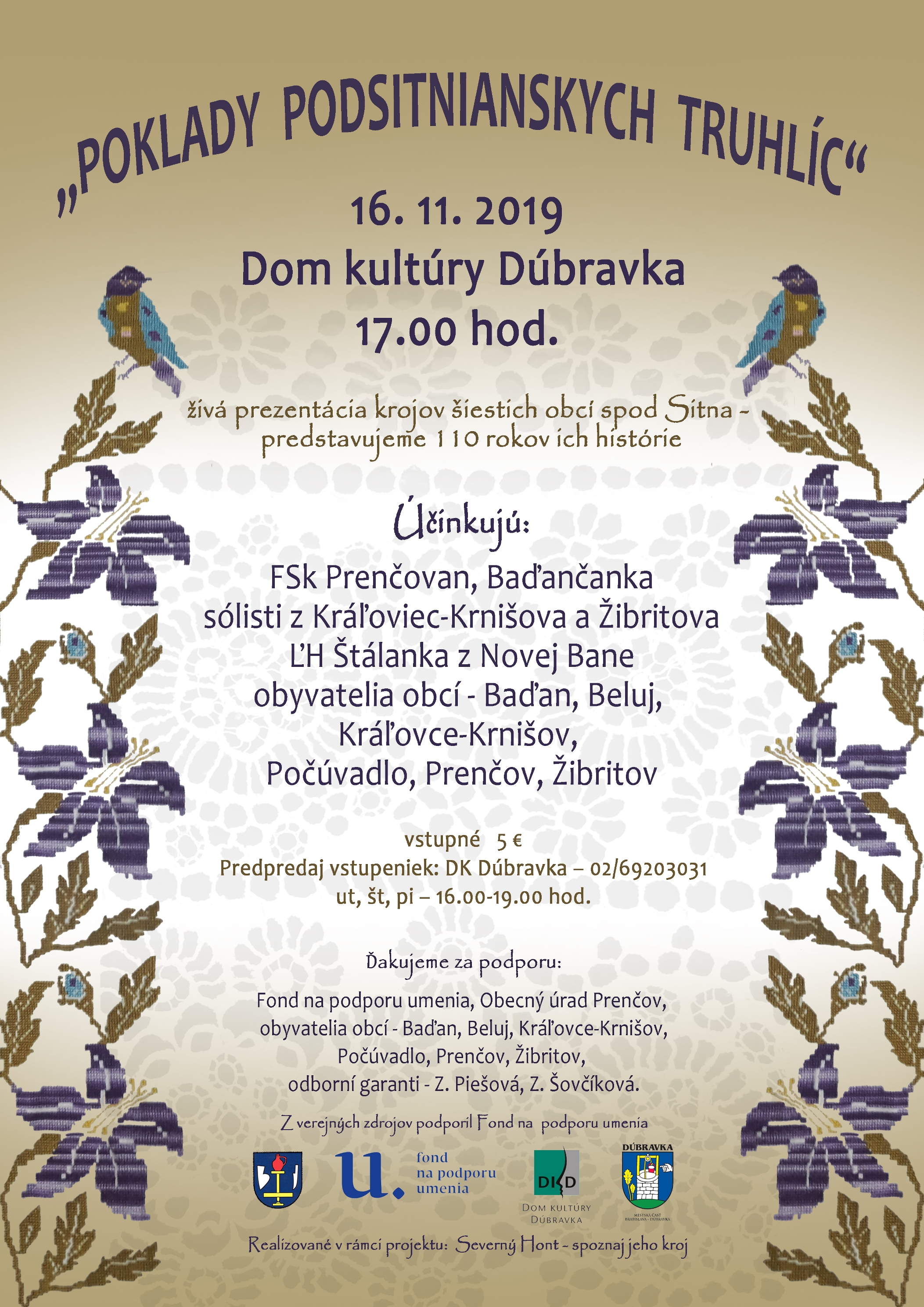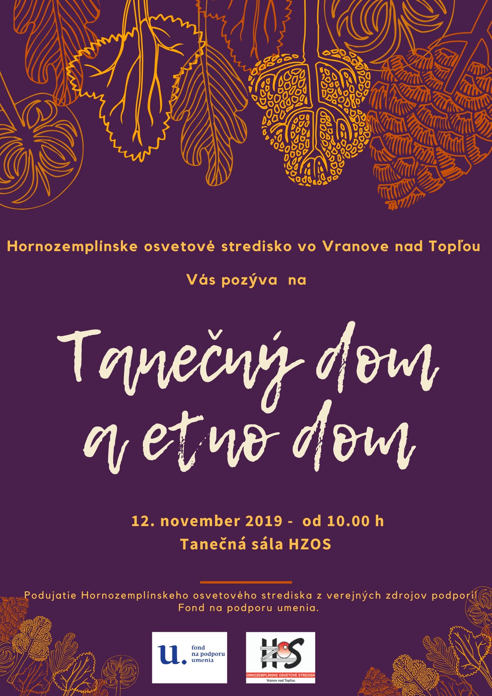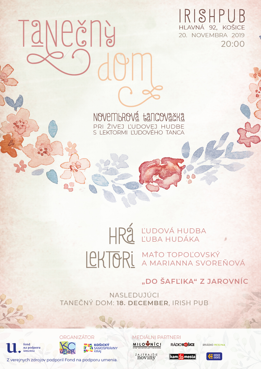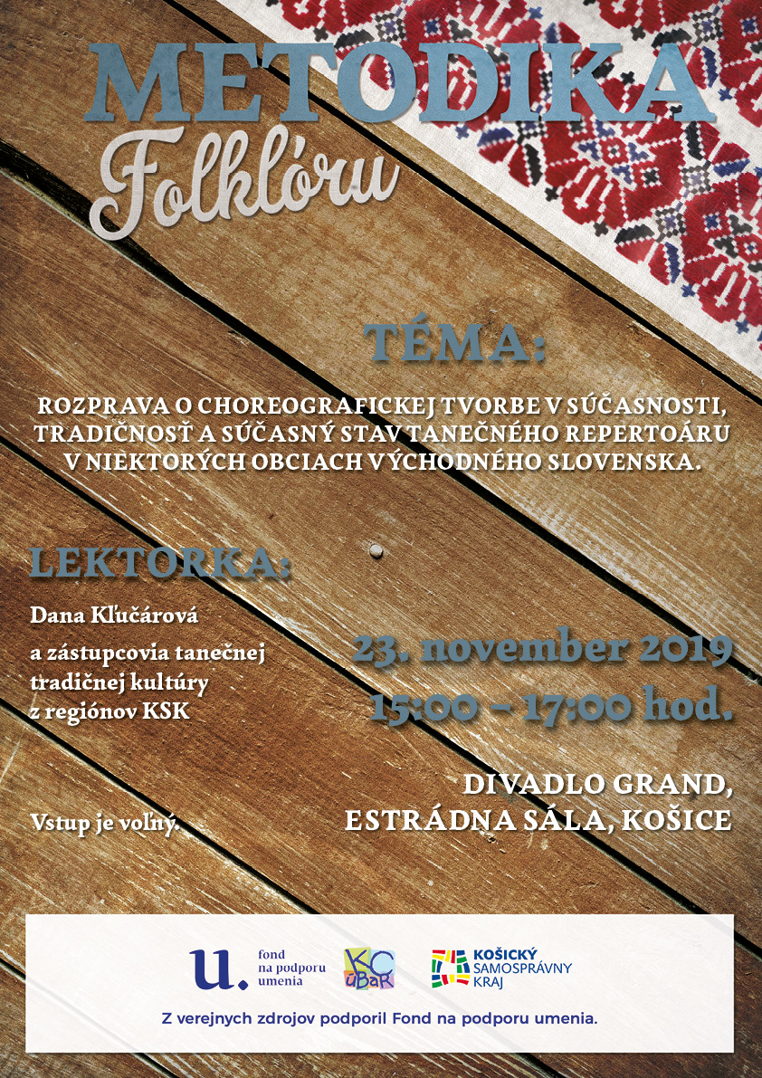 Tanečné dielne pre vedúcich a členov folklórnych kolektívov Nitrianskeho kraja pod vedením etnochoreologičky Agáty Krausovej a tanečného pedagóga Slavomíra Ondejku. 15. novembra 2019 od 9.00 v Krajskom osvetovom stredisku v Nitre.