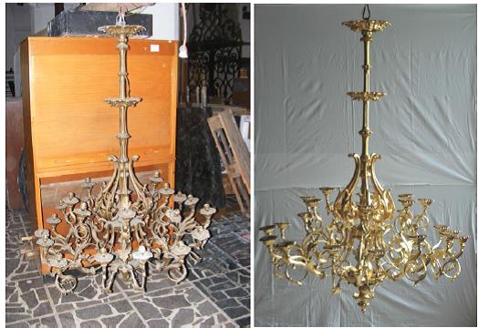 Historický luster zo zbierok Zemplínskeho múzea v Michalovciach možno priradiť k neobarokovému umeleckému smeru. Bohatá rezbárska výzdoba znázorňuje rastlinné úponky a lístie. Závesný dekoračný luster je polychrómovaný celozlátený.