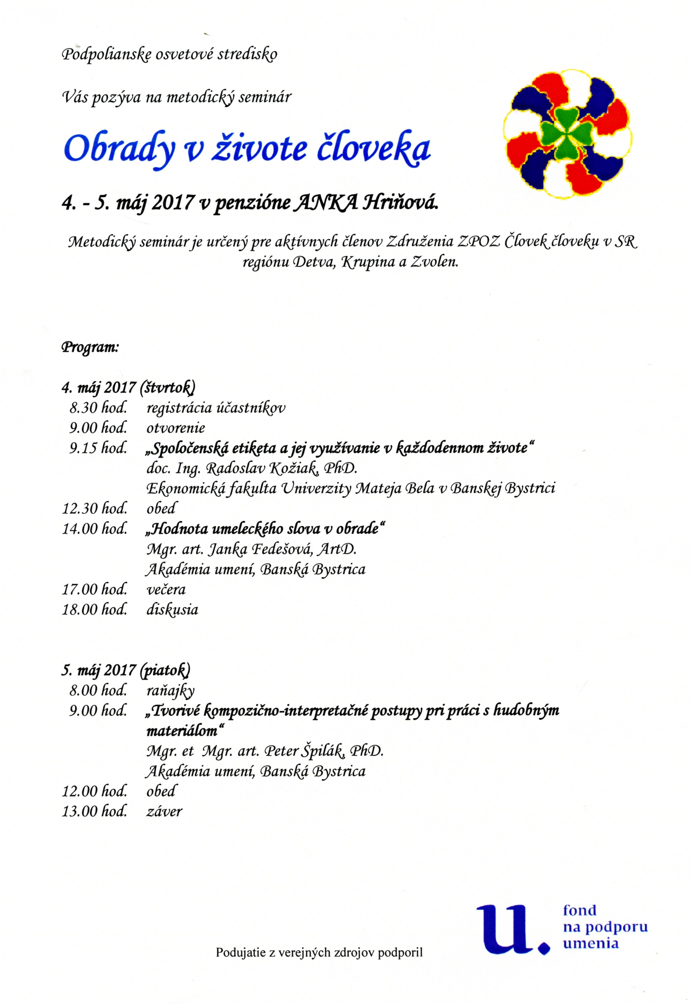 Metodický seminár pre členov Zboru pre občianske záležitosti. Je zameraný na získavanie nových skúseností a poznatkov pri realizácií obradov v živote človeka v obciach a mestách.