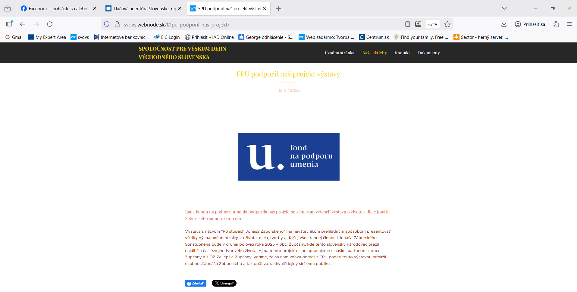 Propagácia projektu na webstránke Spoločnosti pre výskum dejín východného Slovenska: https://svdvs.webnode.sk/nase-aktivity2/; a na webstránke obce Župčany: https://svdvs.webnode.sk/nase-aktivity2/;