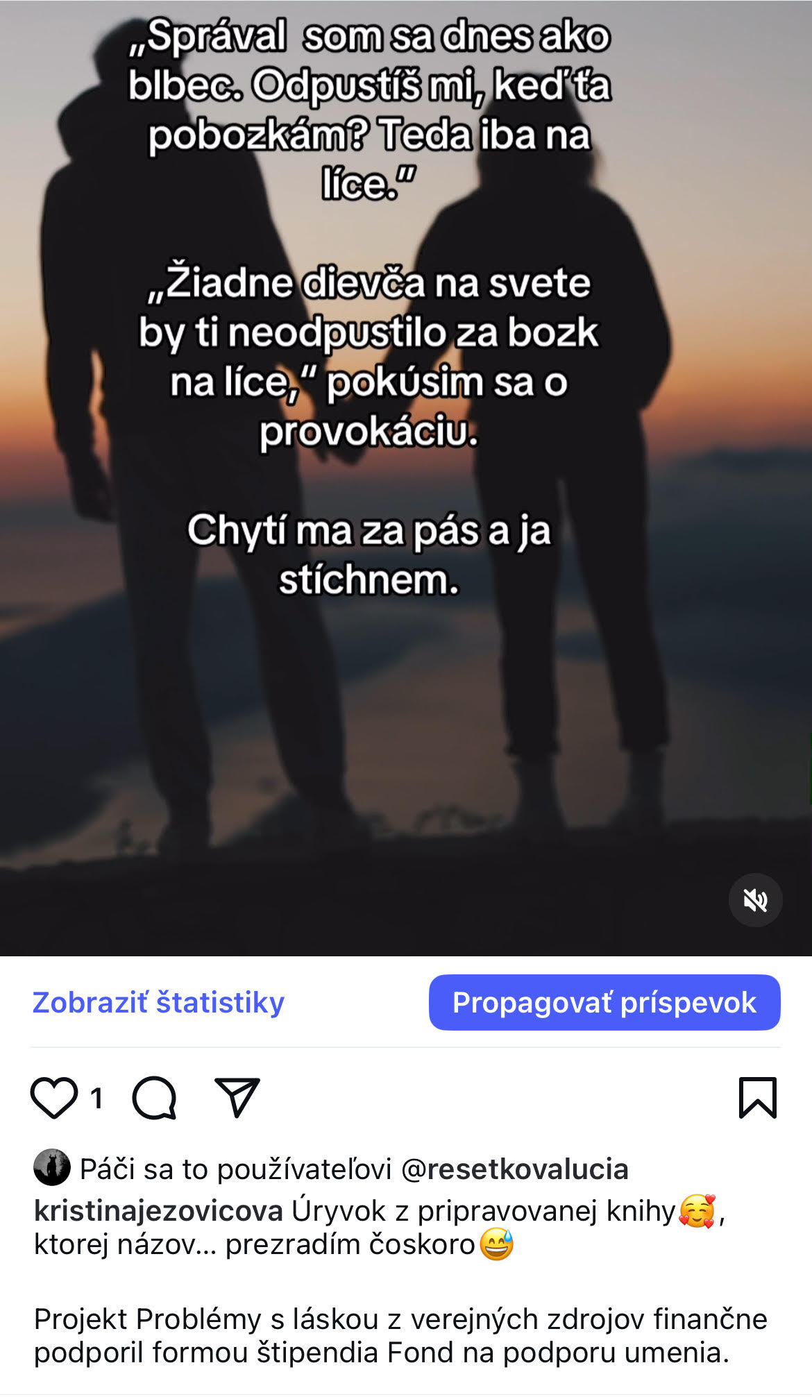 Úryvok z pripravovaného rukopisu Problémy s láskou je vnútorným monológom mladej hrdinky, ktorá prežíva konflikt medzi tým, kým je, a kým by podľa spoločnosti alebo okolia mala byť. V symbolickom obraze skoku do priepasti, kde sídlia levy, sa miešajú pocity strachu, nátlaku i očakávania.