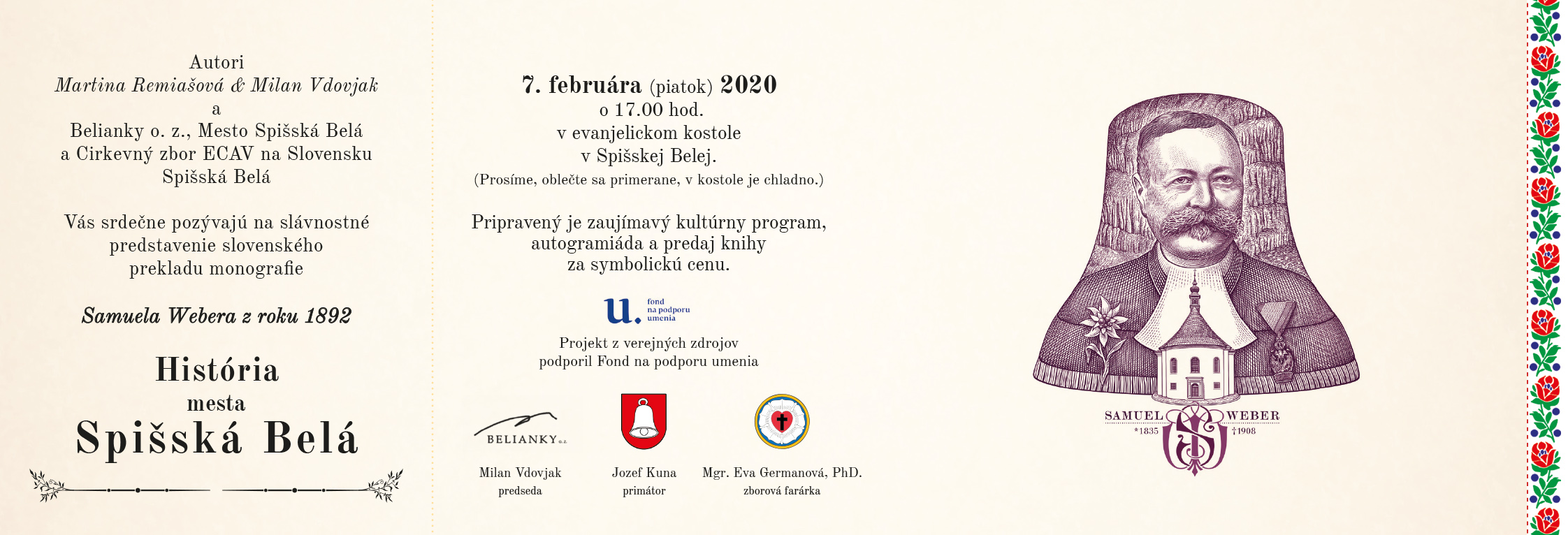 Zostavovatelia knihy, prekladateľka Martina Remiašová a Milan Vdovjak v spolupráci s o. z. Belianky, Mestom Spišská Belá a Cirkevným zborom ECAV na Slovensku Spišská Belá pripravili slávnostú prezetáciu slovenského prekladu monografie Samuela Webera "História mesta Spišská Belá" pre verejnosť i pozvaných hostí. Slávnosť sa uskutoční dňa 7. februára 2020 o 17:00 v evanjelickom kostole v Spišskej Belej. Na účastníkov čaká zaujímavý kultúrny program, autogramiáda i predaj knihy za symbolickú cenu.