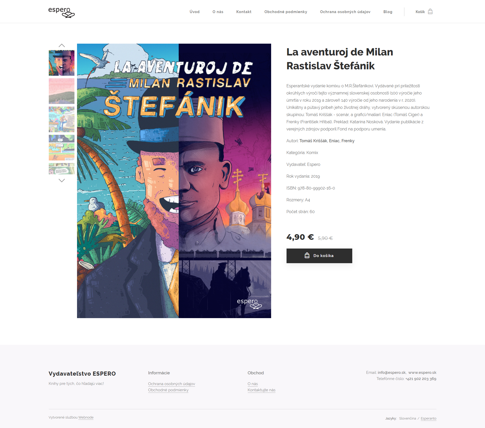 Prezentácia vydaného komixu priamo na webstránke (e-shope) vydavateľstva Espero. Možnosť priameho objednania si tovaru.