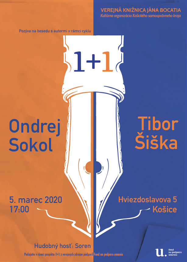 Verejná knižnica Jána Bocatia v Košiciach, kultúrne zariadenie Košického samosprávneho kraja, spustí počas Týždňa slovenských knižníc už 5. ročník obľúbeného cyklu besied s autormi a ich hosťami s názvom 1+1. Projekt z verejných zdrojov podporil Fond na podporu umenia.