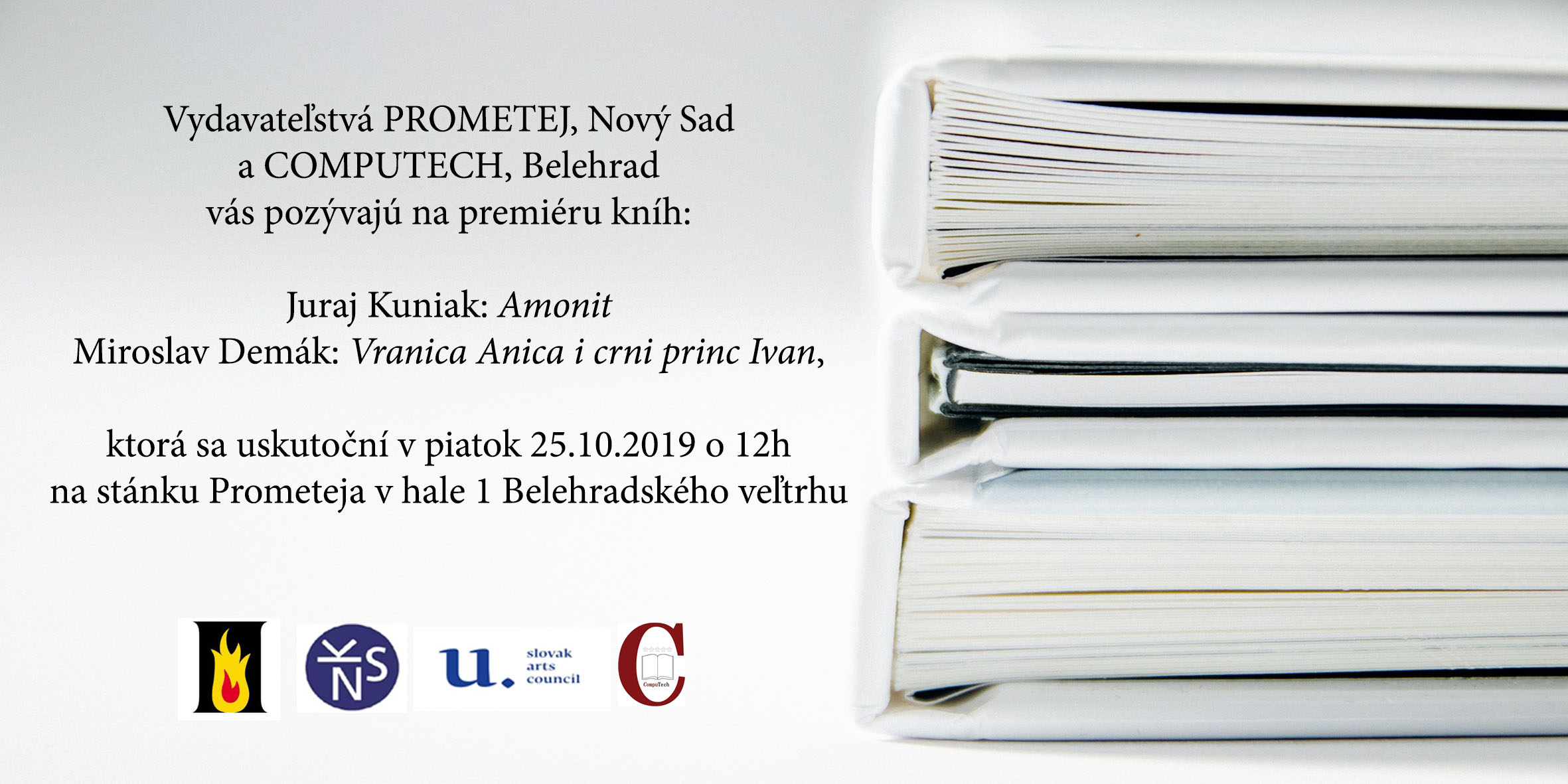 Prezentácia kníh Juraja Kuniaka: Amonit a Miroslava Demáka: Vranica Anica i crni princ Ivan na knižnom veľtrhu v Belehrade 25. 10. 2019 v stánku vydavateľstva Prometej v hale 1