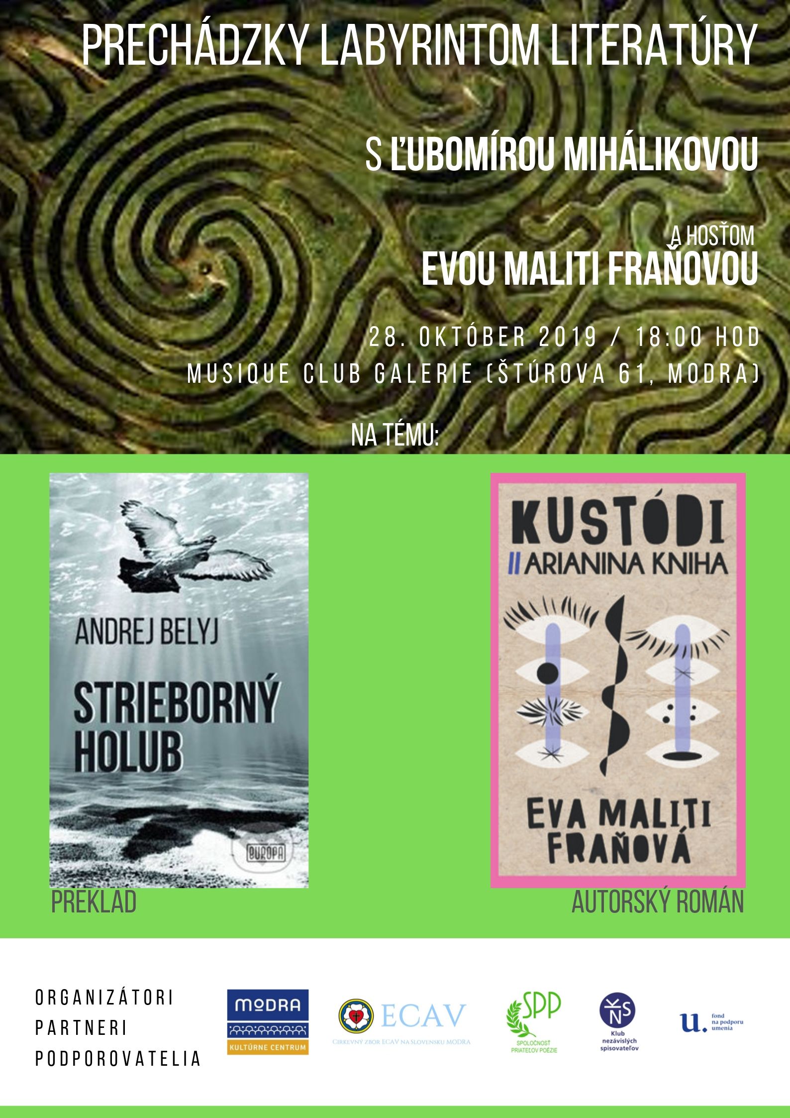 Prechádzky Labyrintom literatúry s Ľubomírou Mihálikovou a hosťom, Evou Maliti Fraňovou 28. októbra 2019 o 18.00 h v Musique Club Galerie, Modra