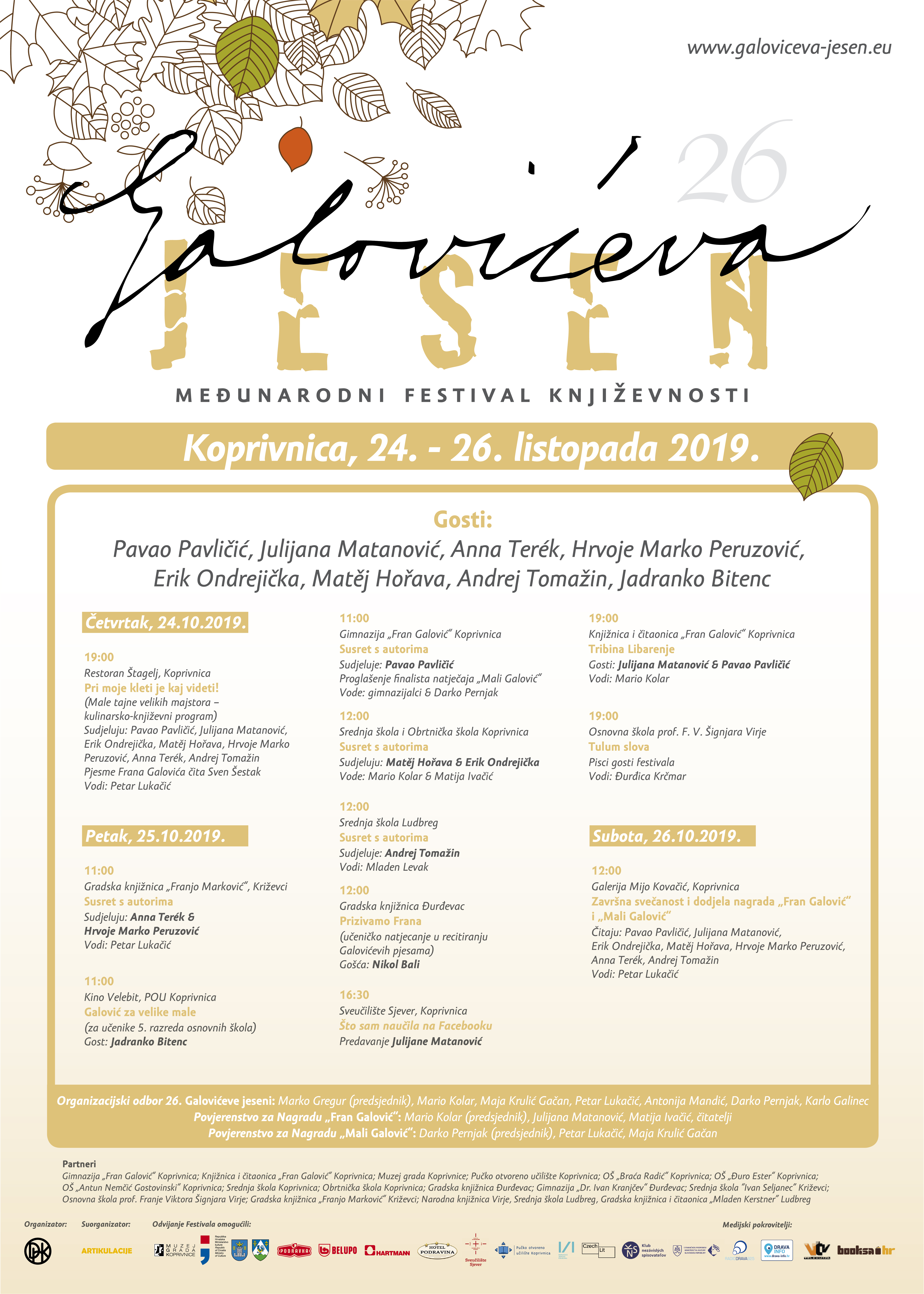 Medzinárodný literárny festival v Koprivnici v dňoch 24. - 26. októbra. Slovenskú literárnu scénu reprezentuje Erik Ondrejička.