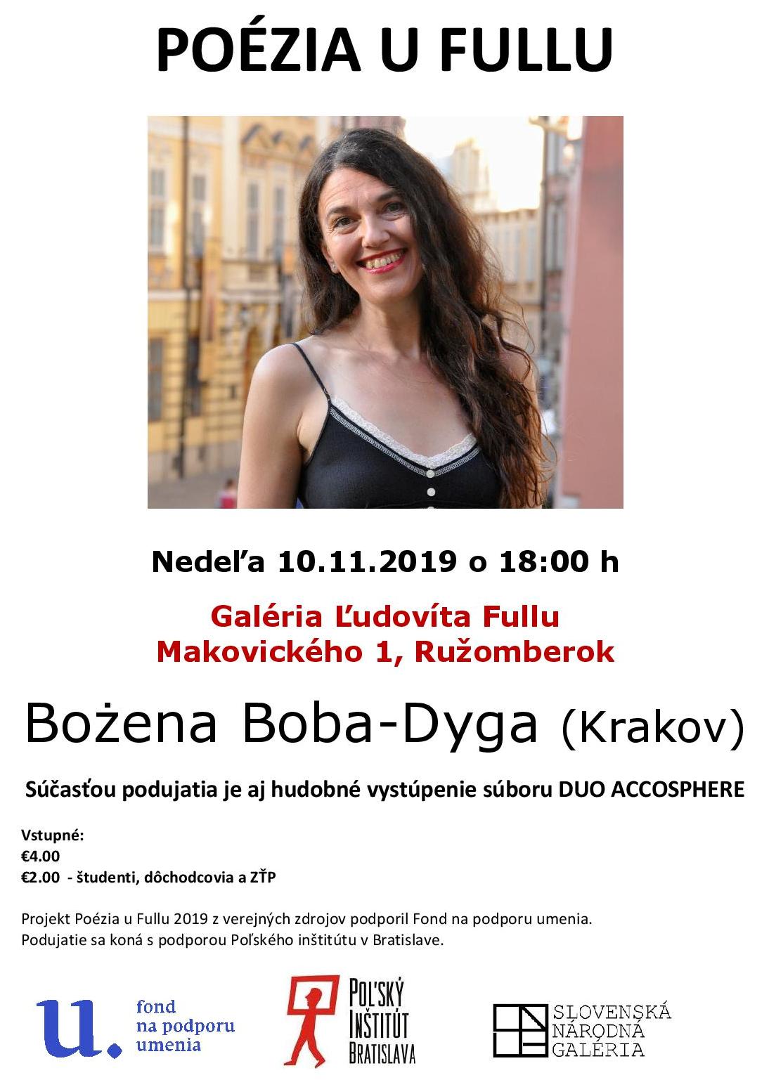 Nedeľa 10.11.2019 o 18:00 h Galéria Ľudovíta Fullu, Makovického 1, Ružomberok Bożena Boba-Dyga (Poľsko)