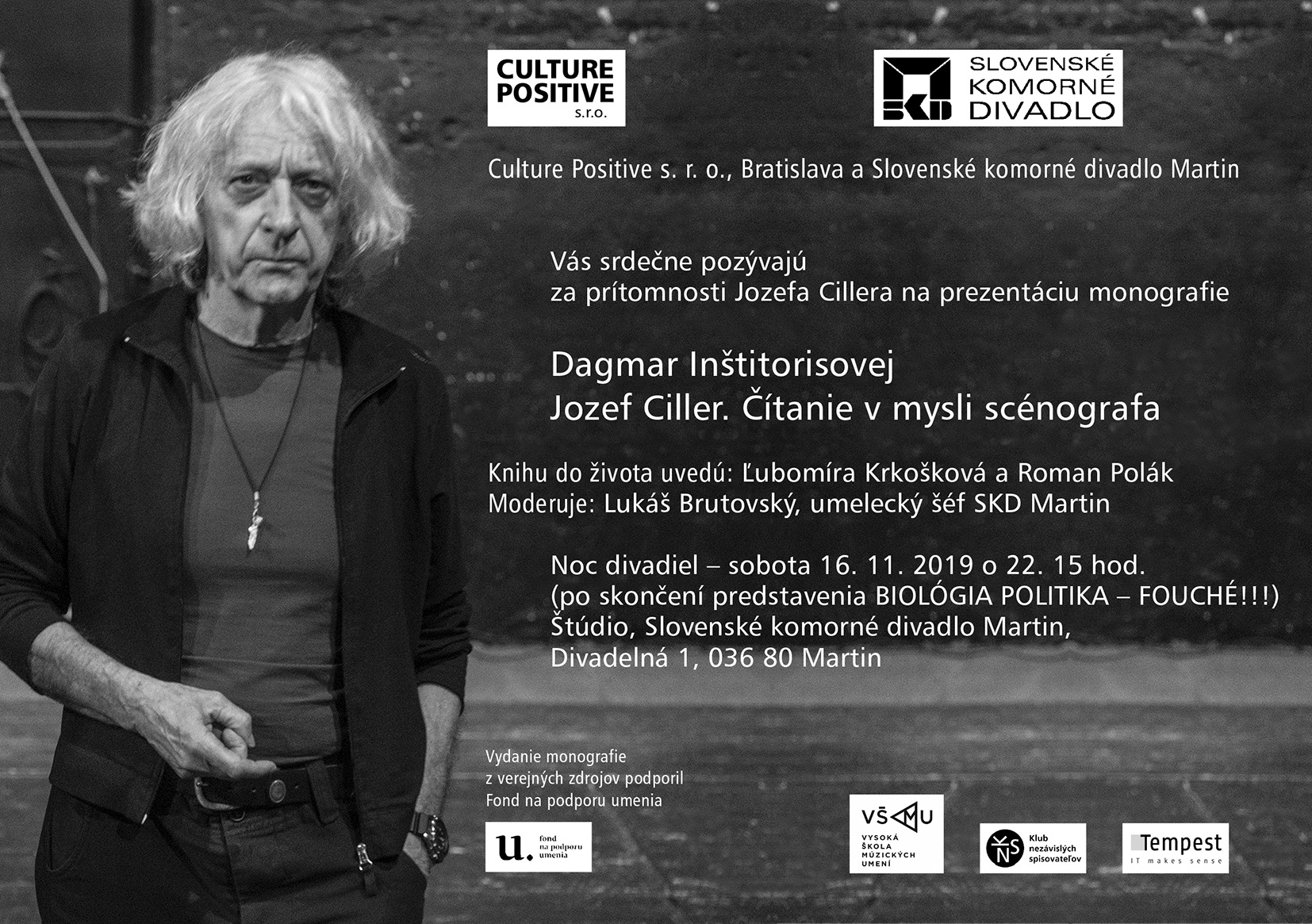 Prezentácia monografie Dagmar Inštitorisovej: Jozef Ciller- Čítanie v mysli scénografa. Prezentácia sa uskutoční v rámci podujatia Noc divadiel 16.11.2019 o 22.15 h, Štúdio, Slovenské komorné divadlo Martin.