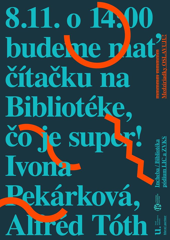 Druhý novembrový víkend určite nezabudnite navštíviť knižný veľtrh Bibliotéka. Predstavia sa na nej aj Medziriadky a to presne v piatok 8.11. o 14:00 na pódiu Literárneho informačného centra a Združenia vydavateľov a kníhkupcov SR. Hosťami našej októbrovej čítačky budú Ivona Pekárková a Alfréd Tóth.