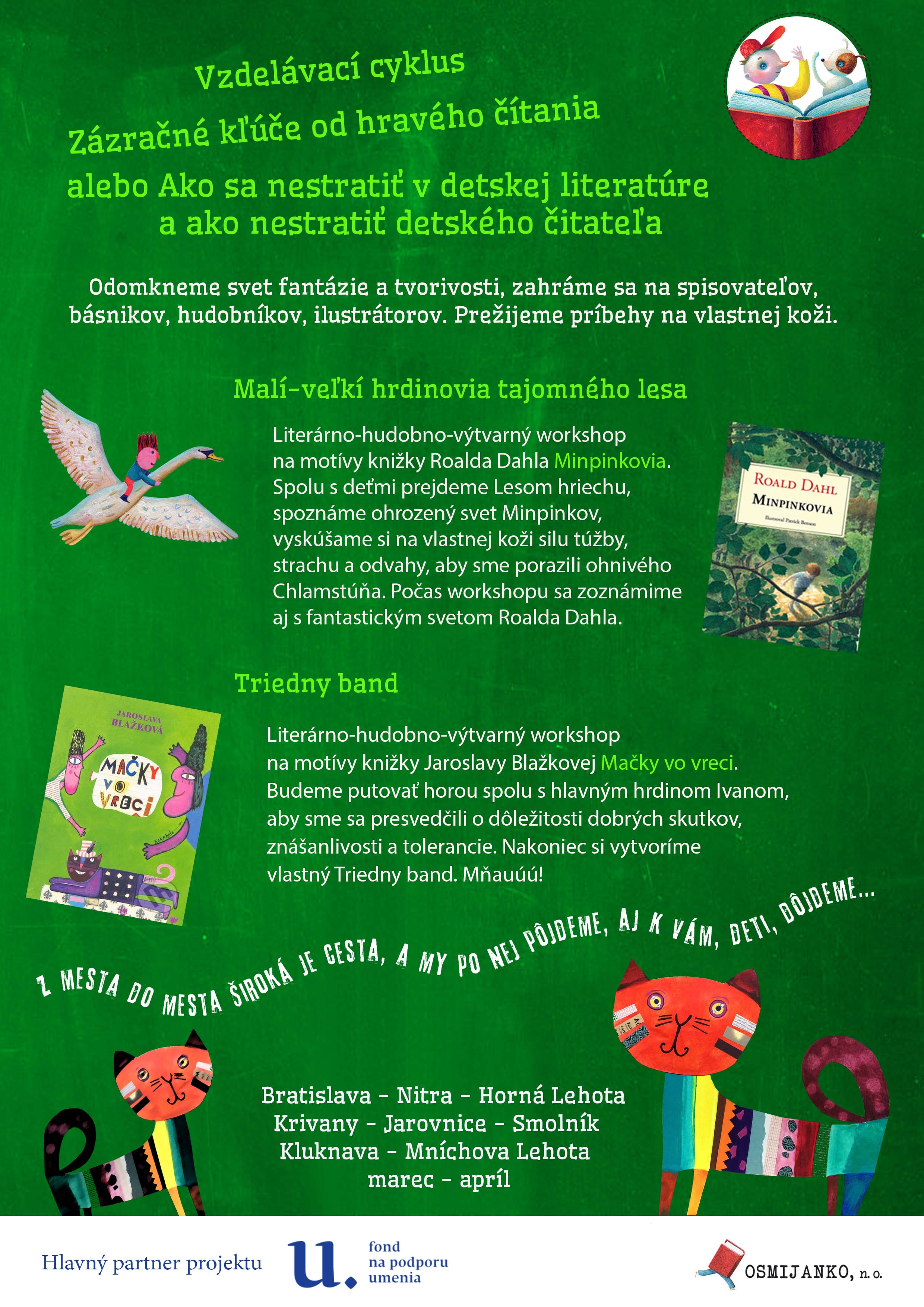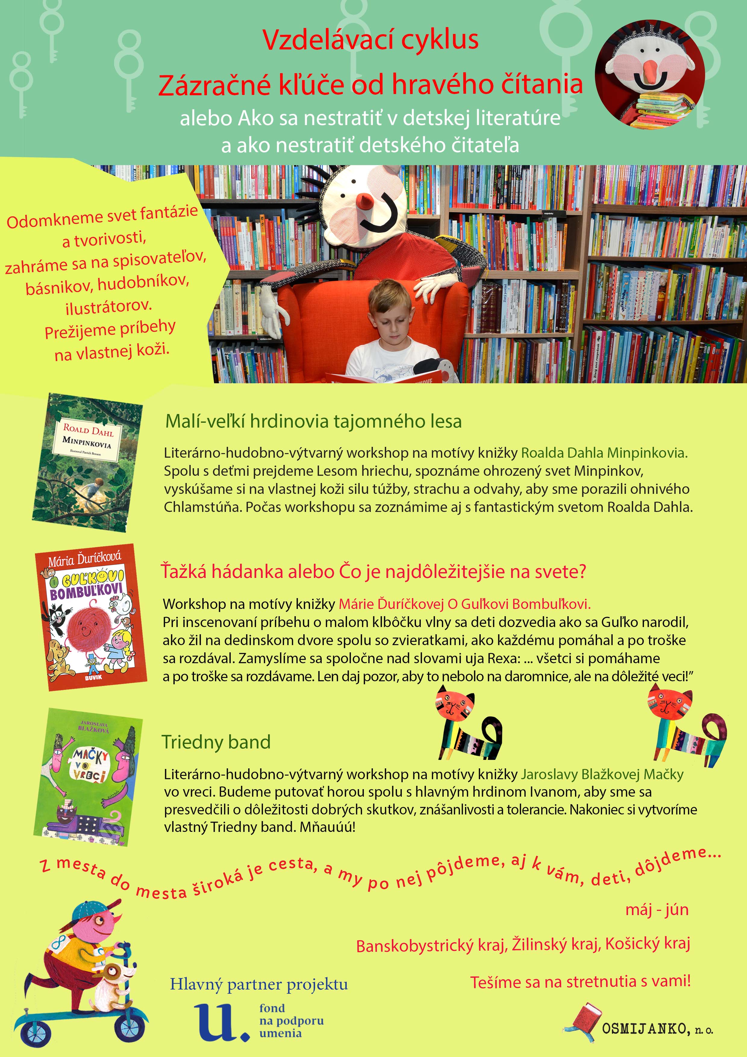 Workshopy na motívy kvalitnej detskej literatúry v regiónoch Slovenska.