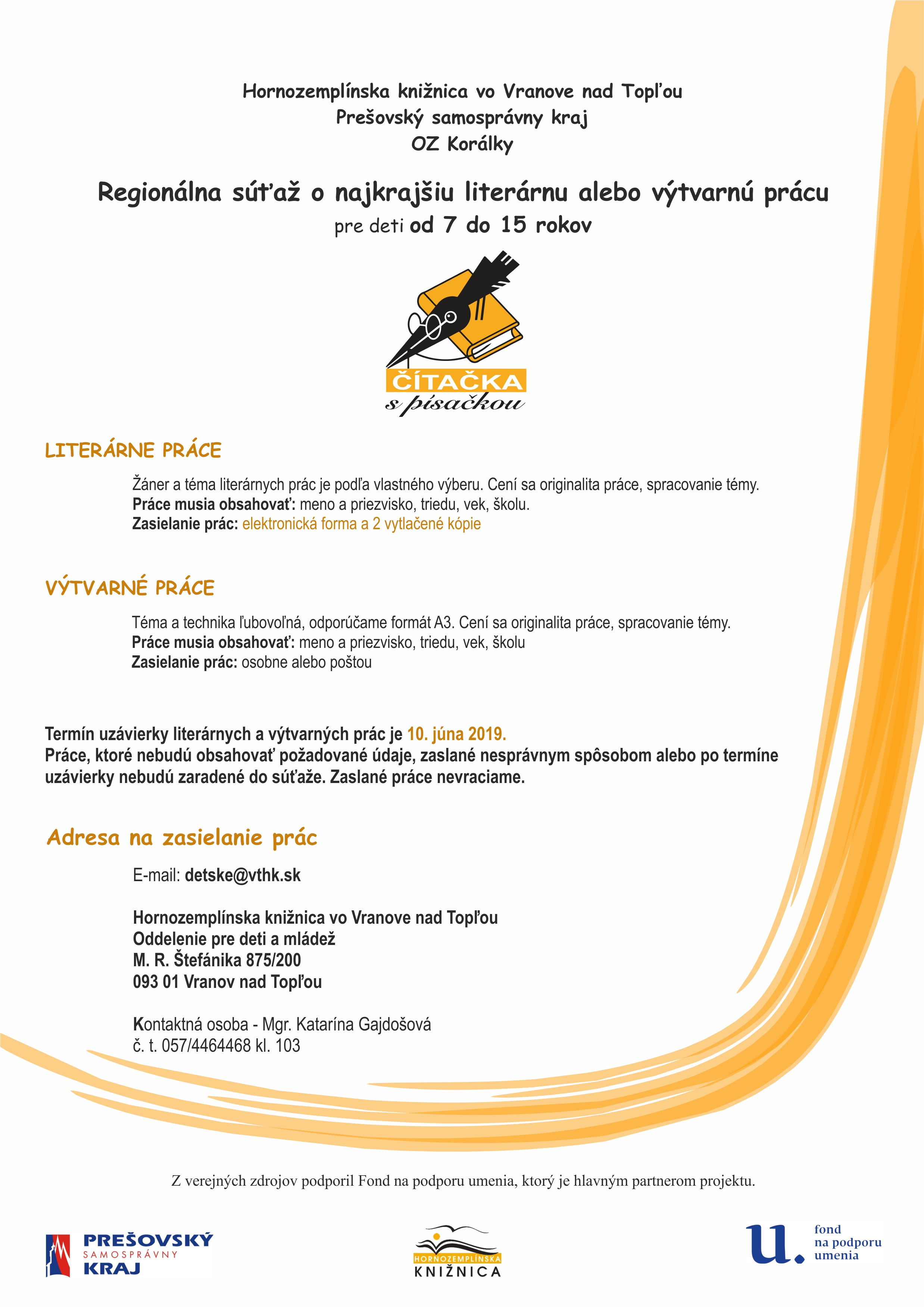Regionálna súťaž o najkrajšiu literárnu alebo výtvarnú prácu pre deti od 7 do 15 rokov