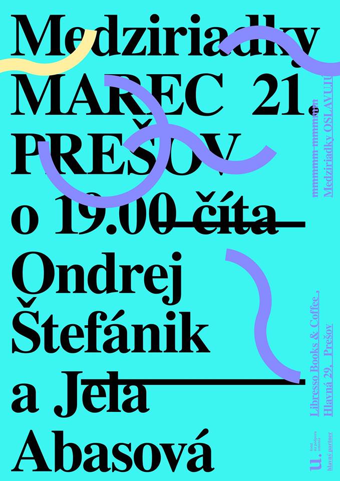Medziriadky sa predstavia v Prešove! Marcová čítačka Medziriadkov bude prozaická. Tak ako na všetkých našich čítaniach i tentoraz dostane priestor jeden etablovaný autor a jedna mladá začínajúca autorka, finalistka Medziriadkov. Svoju tvorbu vo štvrtok 21. marca o 19:00 v Libresso Books & Coffee predstavia Ondrej Štefánik a Jela Abasová. Moderuje Marta Součková. Autorské čítania Medziriadkov finančne podporil Fond na podporu umenia.
