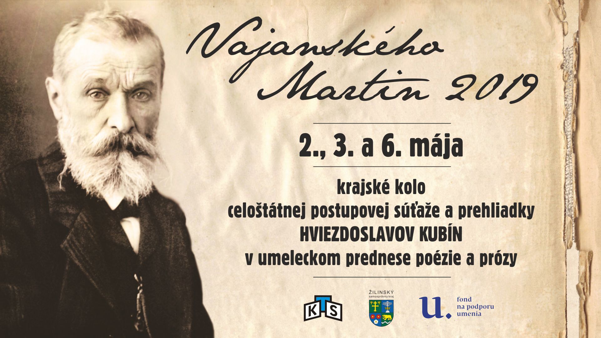 Vajanského Martin 2019 - krajské kolo celoštátnej postupovej súťaže a prehliadky Hviezdoslavov Kubín v umeleckom prednese poézie a prózy, v tvorbe recitačných kolektívov a divadiel poézie detí, mládeže a dospelých