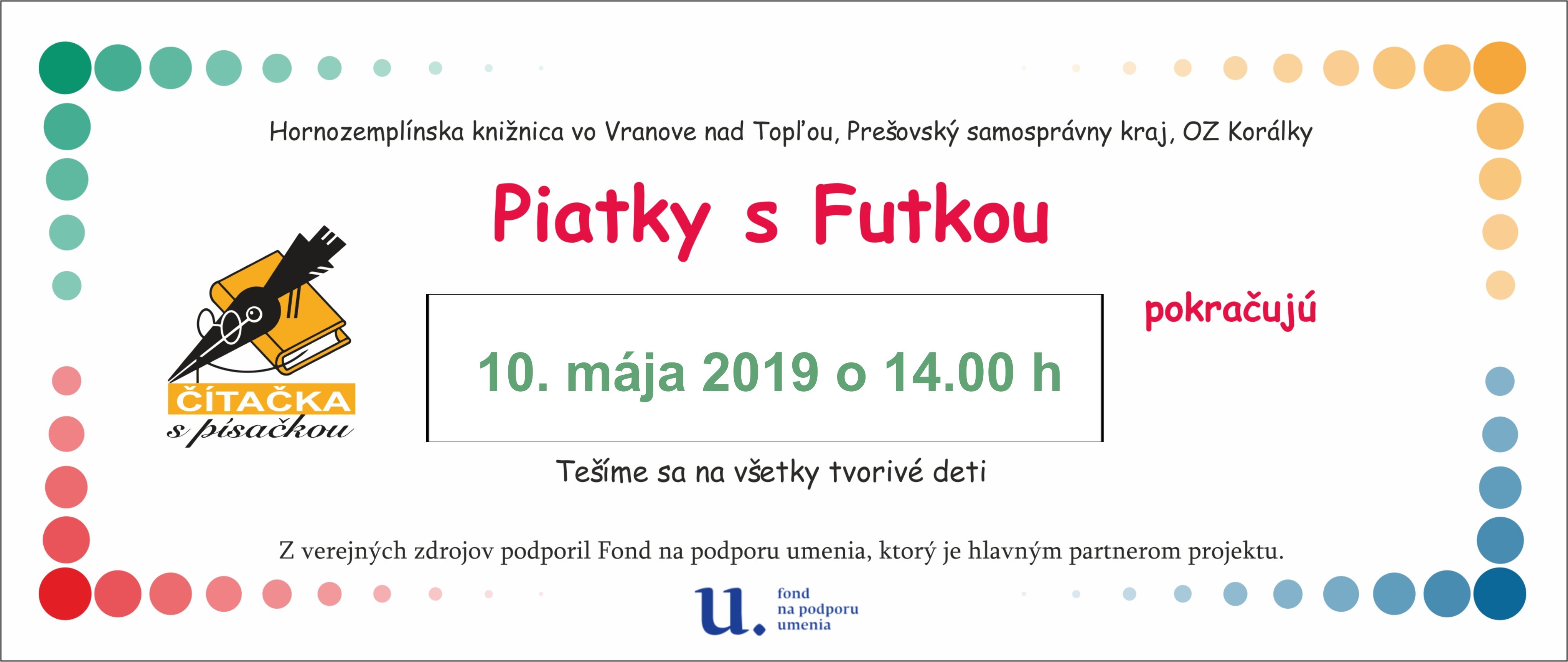 Hornozemplínska knižnica vo Vranove nad Topľou aj v tomto roku pokračuje s realizáciou literárno-tvorivých stretnutí s obľúbenou spisovateľkou pre deti a mládež Gabrielou Futovou.
