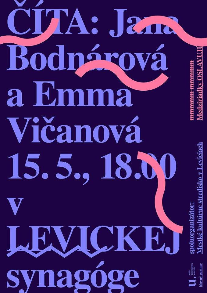 Medziriadkovské čítačky pokračujú v prozaickej šnúre. Na naše májové čítanie prijali pozvanie do Levíc spisovateľka Jana Bodnarova, finalistka aktuálneho ročníka ceny Anasoft litera, a mladá prozaička, Medziriadkarka Emma Vičanová. Moderovať bude Radovan Potočár. Autorské čítania Medziriadkov z verejných zdrojov finančne podporil Fond na podporu umenia. Podujatie spoluorganizuje Mestské kultúrne stredisko Levice.