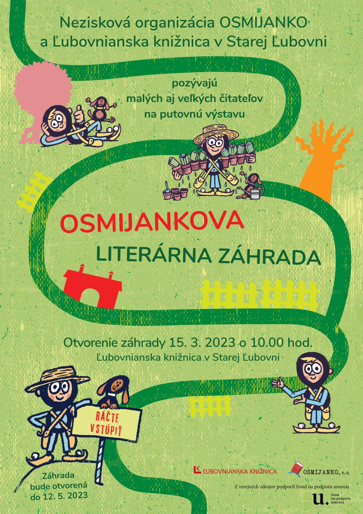 Putovná výstava Osmijankova literárna záhrada je kreatívnou čitárňou, v ktorej návštevníci "sadia" semienka svojho čitateľstva. Výstava pozýva malých aj veľkých čitateľov k tvorivej čitateľskej hre. Prostredníctvom interaktívnych objektov, ktoré navrhla slovenská scénografka Naďa Salbotová, sa malí aj veľkí čitatelia hravým, zážitkovým spôsobom zoznamujú s jednotlivými literárnymi žánrami, knižnými dielami zo slovenských vydavateľstiev.