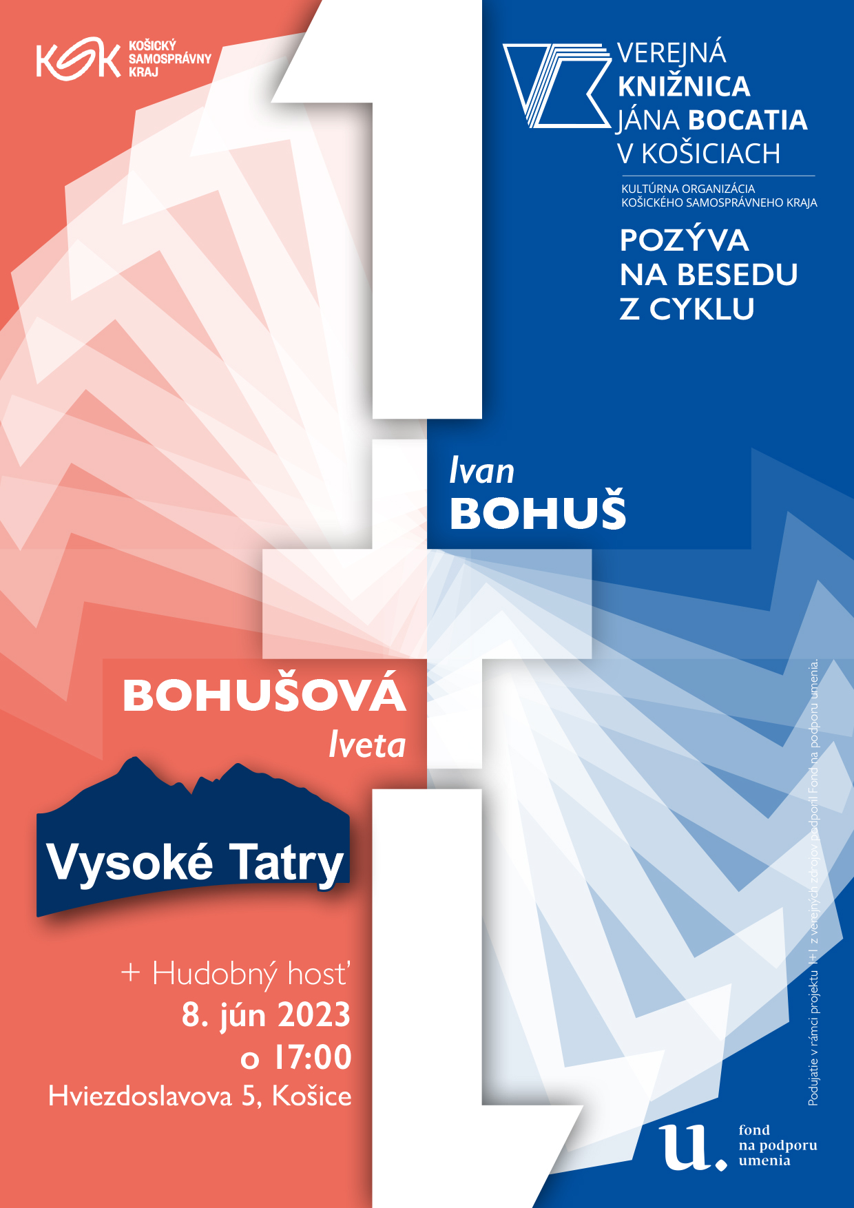 Hlavnou témou júnového podujatia z obľúbeného cyklu besied 1+1 budú Vysoké Tatry. Pozvanie do Verejnej knižnice Jána Bocatia v Košiciach prijali manželia Bohušovci – Iveta a Ivan – ktorí sa dlhodobo venujú prezentácií tohto najvyššieho slovenského pohoria.