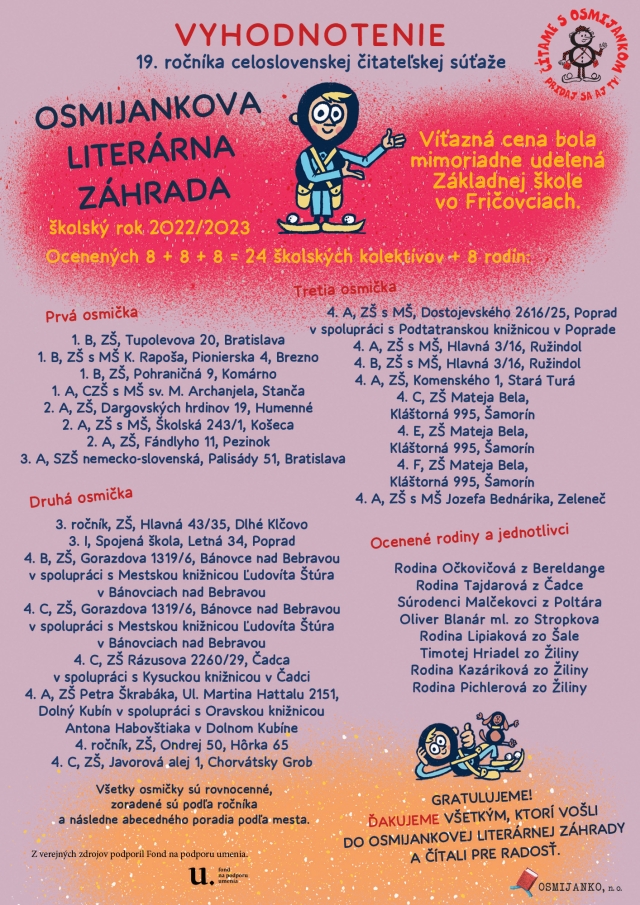 Celoslovenská čitateľská súťaž zameraná na podporu čitateľskej gramotnosti detí mladšieho školského veku - - vyhodnotenie 19. ročníka