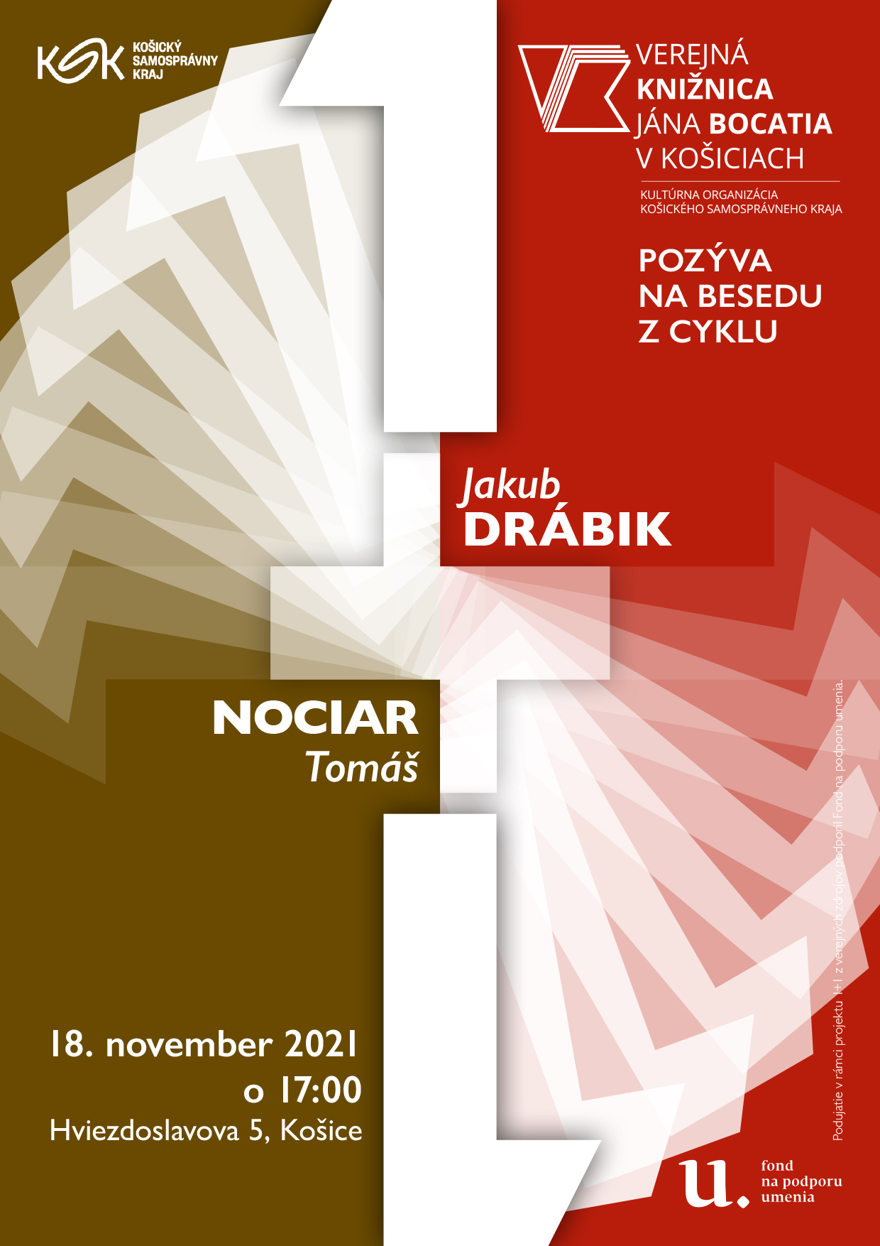 Témou novembrovej diskusie z cyklu besied 1+1, ktoré organizuje Verejná knižnica Jána Bocatia v Košiciach, bude fašizmus a súčasné podoby extrémizmu. Pozvanie prijali historik, autor úspešnej knihy Fašizmus Jakub Drábik a politológ, popredný expert na krajnú pravicu Tomáš Nociar. Podujatie sa bude konať vo štvrtok 18. novembra 2021 o 17:00 v centrálnej požičovni knižnice na Hviezdoslavovej ul. 5.