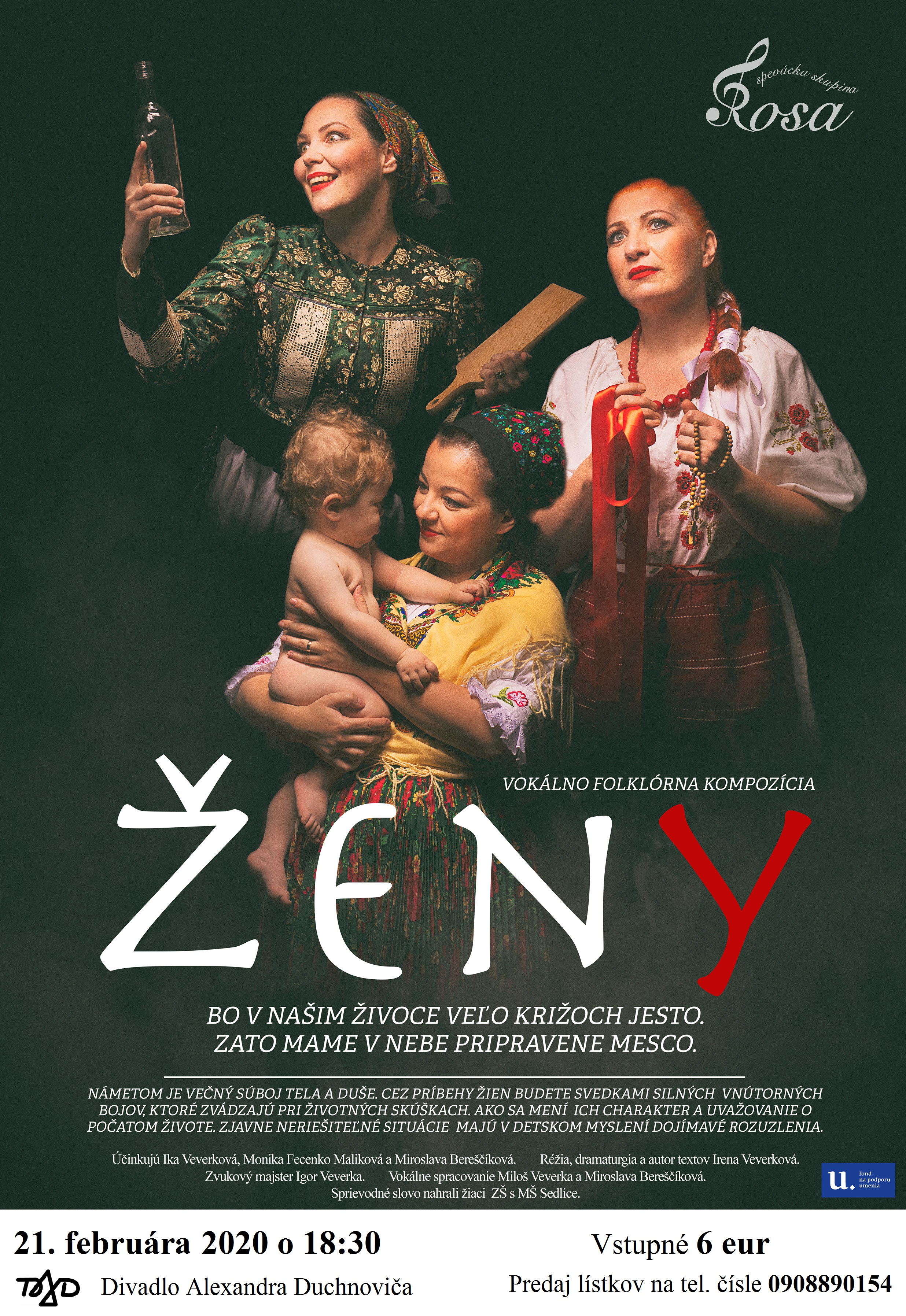 Vokálno-folklórna kompozícia. Cez príbehy žien budete svedkami silných vnútorných bojov, ktoré zvádzajú pri životných skúškach.