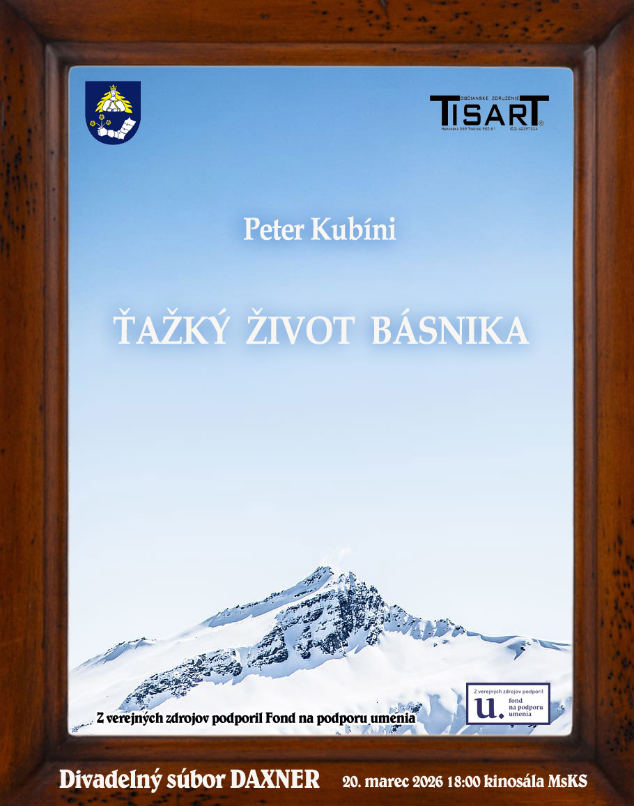 Občianske združenie TisArt v spolupráci s DS Daxner prinesie na ochotnícke javisko v Tisovci autorské divadelné predstavenie Petra Kubíniho - Ťažký život básnika. Hra je kombináciou absurdnej komédie a satiry s prvkami grotesky a obsahuje situačný humor, slovné hračky, dramatické zvraty. Zobrazuje kontrast medzi snílkom a vypočítavým svetom, v ktorom sa pohybuje.
