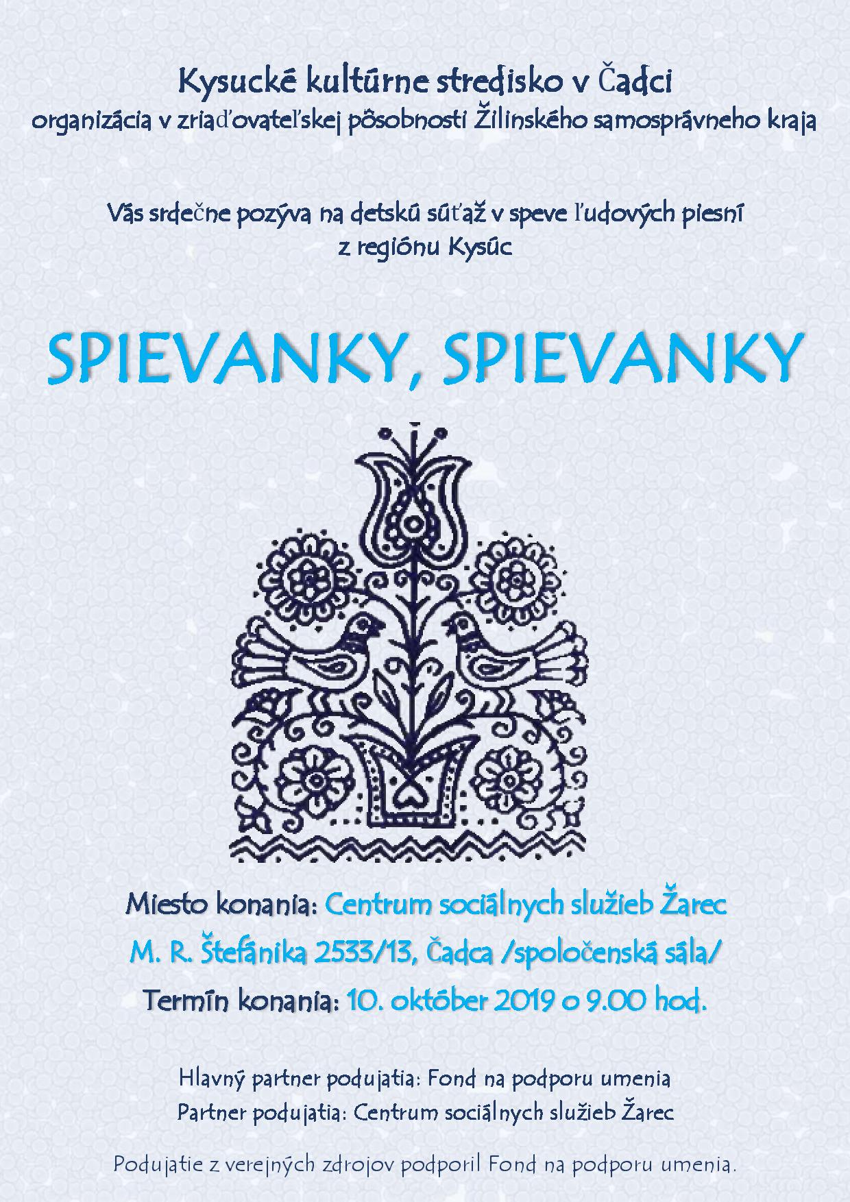 2. ročník nepostupovej súťaže v speve ľudových piesní z regiónu Kysúc pre deti a mládež do 15 rokov z nášho regiónu. Súťaží sa v kategóriách – spevácke skupiny, sólisti speváci a spevácke duá. Hlavným cieľom súťaže je snaha podporiť mladé talenty, ktoré sa venujú spevu ľudových piesní, umožniť im prezentovať sa pred publikom a podporovať poznávanie tradičných folklórnych piesní z nášho regiónu. Súťaž pozostáva zo súťažných vystúpení, interného hodnotenia poroty a odborného rozborového seminára.