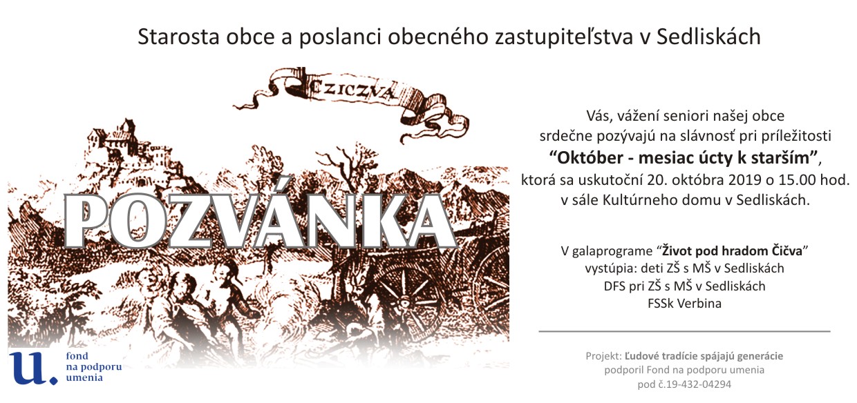 Komunitné združenie Sedliská pripravilo spoločný program "Život pod hradom Čičva", ktorého cieľom bolo spojiť obecné folklórne skupiny a detský folklórny súbor pri ZŠ s MŠ v Sedliskách, ktorý bude odprezentovaný v mesiaci október počas slávnosti "mesiaca úcty k starším".