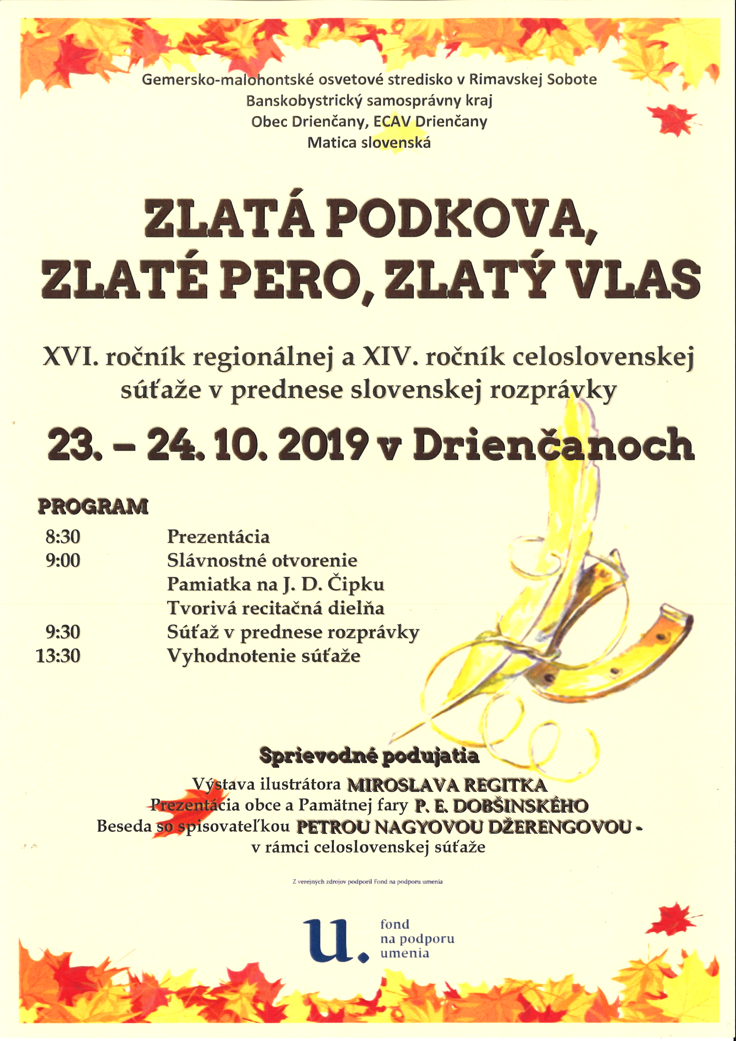 XVI. ročník regionálnej a XIV. ročník celoslovenskej súťaže v prednese slovenskej rozprávky Zlatá podkova, zlaté pero, zlatý vlas