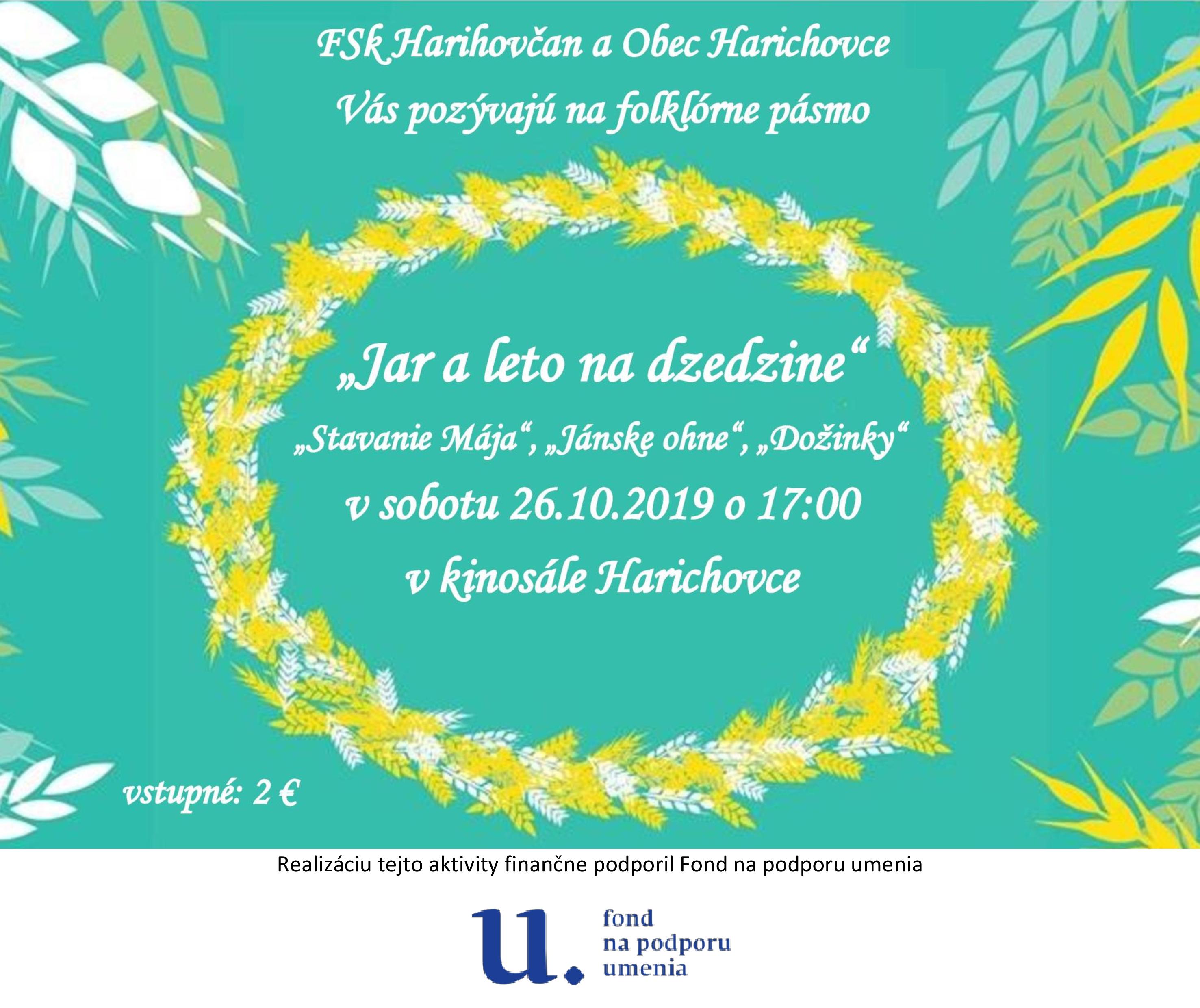 Uvedenie a premiéra pôvodného folklórneho pásma miestnych zvykov a obyčajov s tematikou jari a leta na dedine – stavanie májov, jánske ohne, dožinky pod taktovkou miestnej FSk Harihovčan.