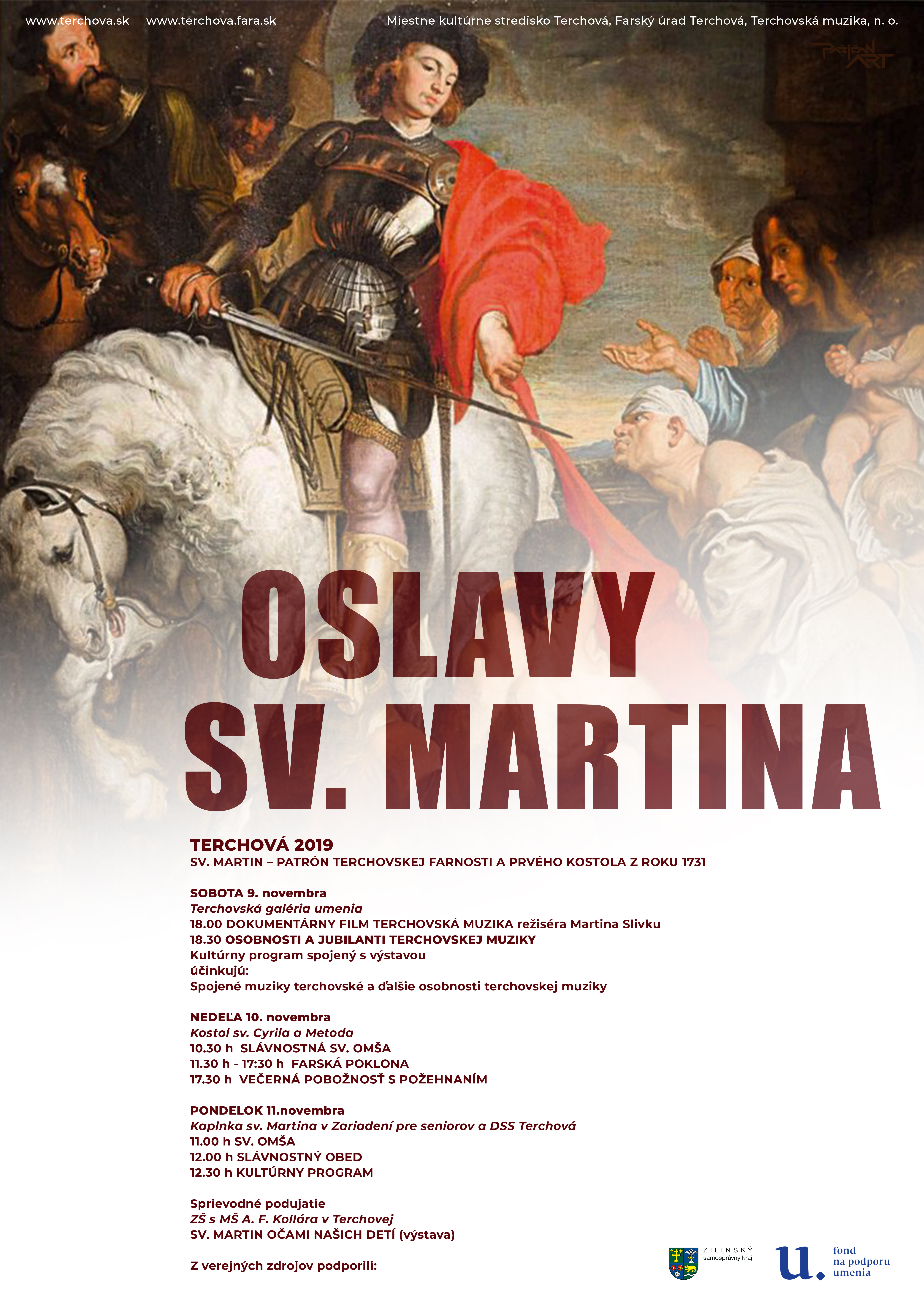 Uvedenie druhého zo štyroch programov cyklu "Osobnosti a jubilanti terchovskej muziky" neprofesionálneho komunitného zoskupenia Spojené muziky terchovské, spojené s tematickou výstavou a uvedením filmu Martina Slivku Terchovská muzika v rámci osláv sv. Martina, patróna Terchovskej farnosti a prvého kostola z roku 1731