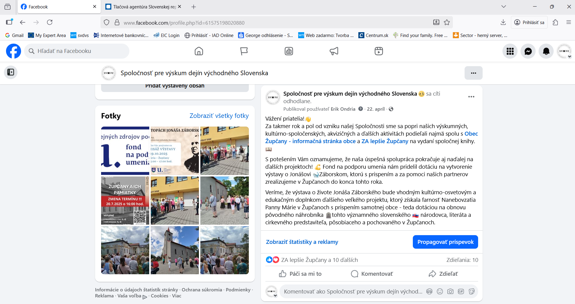 Výstup v podobe príspevkov na sociálne siete Spoločnosti pre výskum dejín východného Slovenska: https://www.facebook.com/profile.php?id=61575198020880.