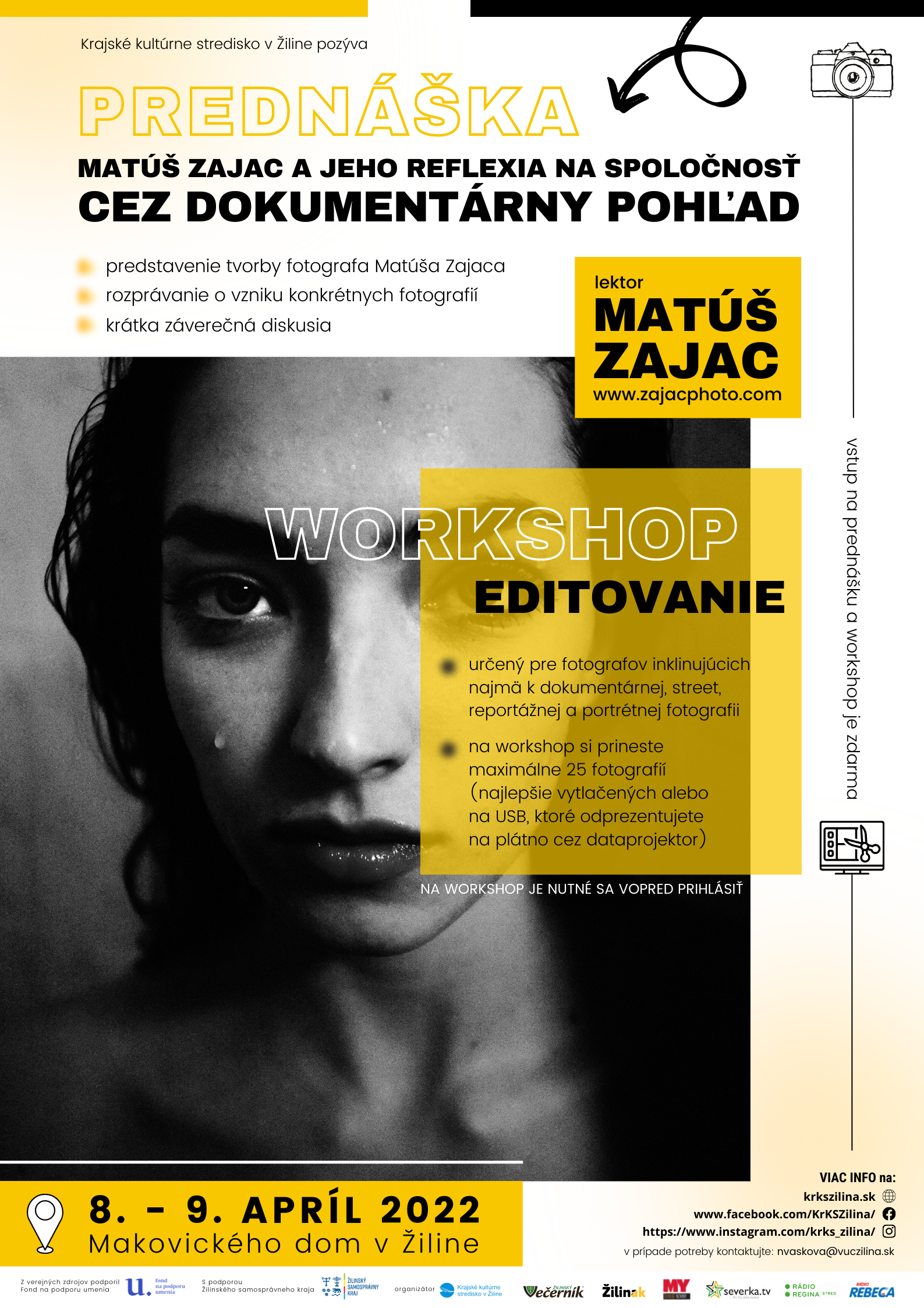 Dvojdňové vzdelávacie podujatie (prednáška, workshop) s dokumentárnym fotografom Matúšom Zajacom pri príležitosti Svetového dňa umenia. (15. 4. 2022)