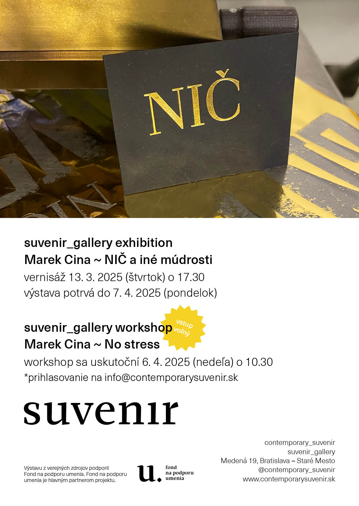 Marek Cina _ NIČ a iné múdrosti Otvorenie výstavy: štvrtok 13. marca o 17:30 Výstava potrvá do 7. apríla 2025