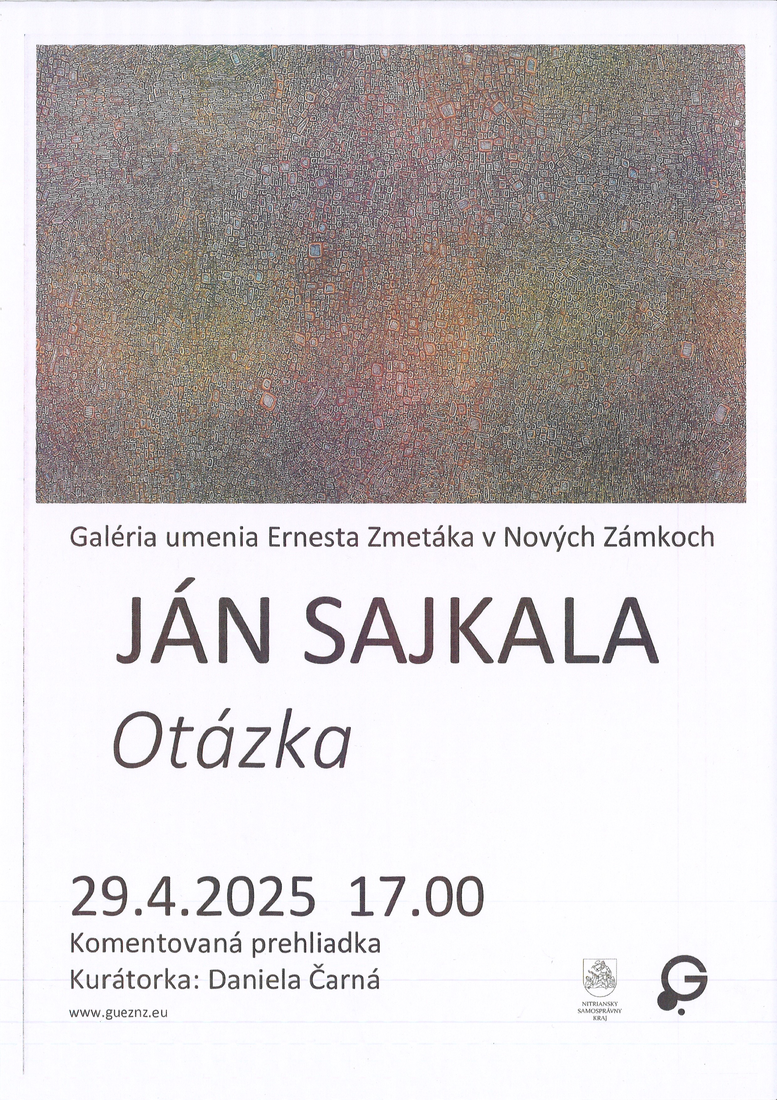 Galéria umenia Ernesta Zmetáka v Nových Zámkoch Vás pozýva na komentovanú prehliadku výstavy s názvom Ján Sajkala: Otázka Kurátorka: Daniela Čarná Miesto podujatia: Galéria umenia Ernesta Zmetáka v Nových Zámkoch / Ernest Zmeták Művészeti Galéria, Érsekújvár Björnsonová 1, 940 02 Nové Zámky Termín podujatia: 29. apríla 2025 / utorok/ 17,00 h. Vstupné: zdarma