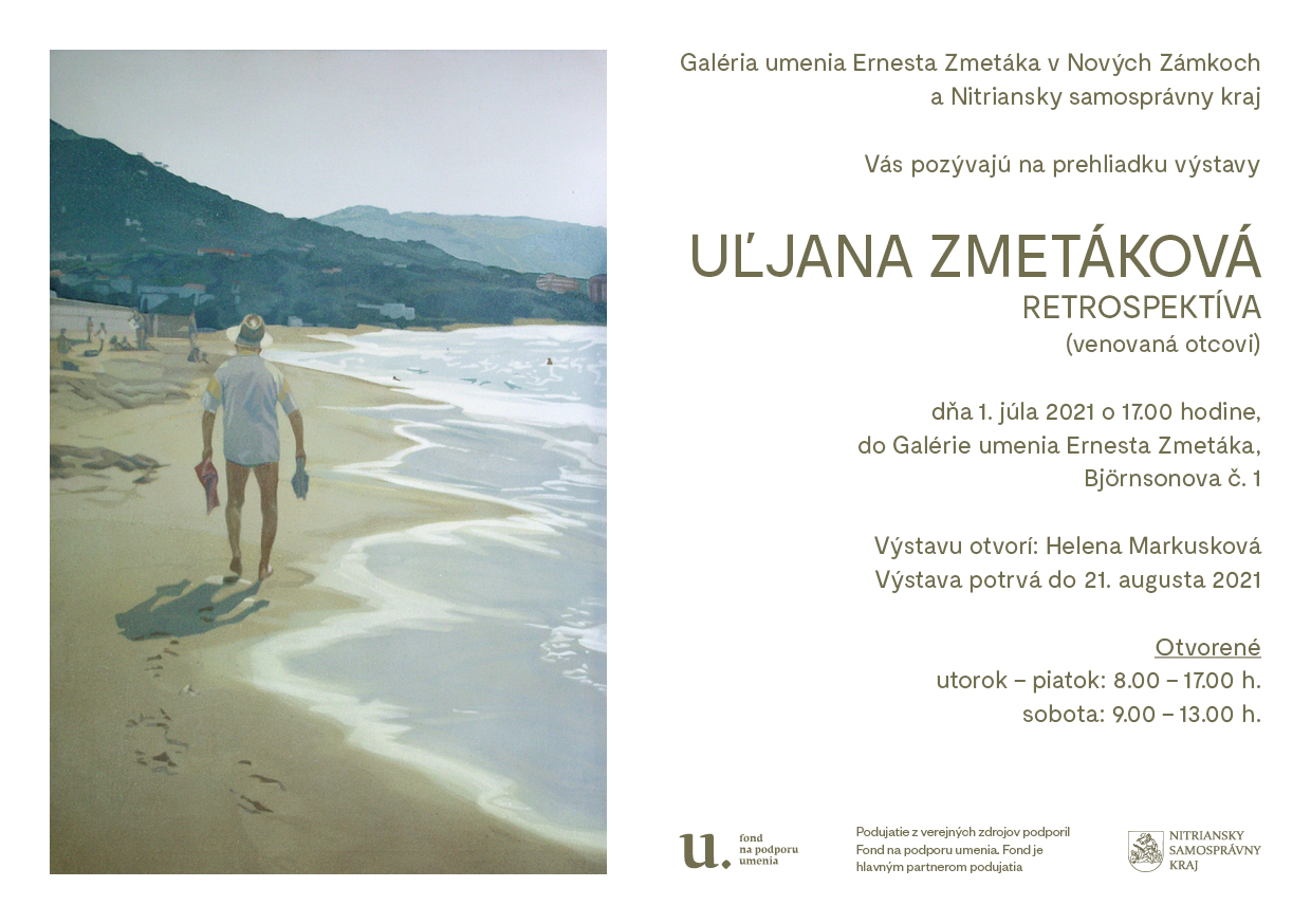 Galéria umenia Ernesta Zmetáka v Nových Zámkoch a Nitriansky samosprávny kraj Vás pozývajú na prehliadku výstavy s názvom Uľjana Zmetáková RETROSPEKTÍVA (venovaná otcovi) dňa 1. júla 2021 o 17,00 h. Výstavu otvorí Helena Markusková.