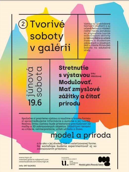 Erika Miklóšová Modulovať. Mať zmyslové zážitky a čítať prírodu kurátorka výstavy: Gabriela Garlatyová grafický dizajn pozvánok: Nicol Hochholczerová