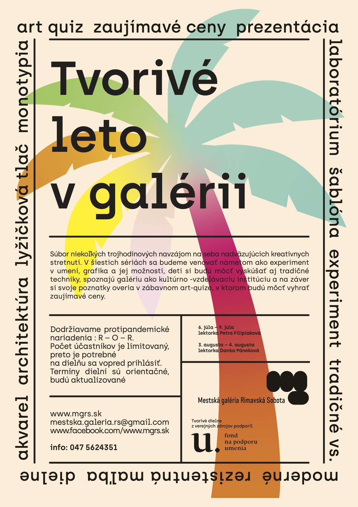 Tvorivé leto v galérii /6 dielní/ 6. – 9. júla: lektorka Petra Filipiaková 3. – 4. augusta: lektorka Danka Páneková