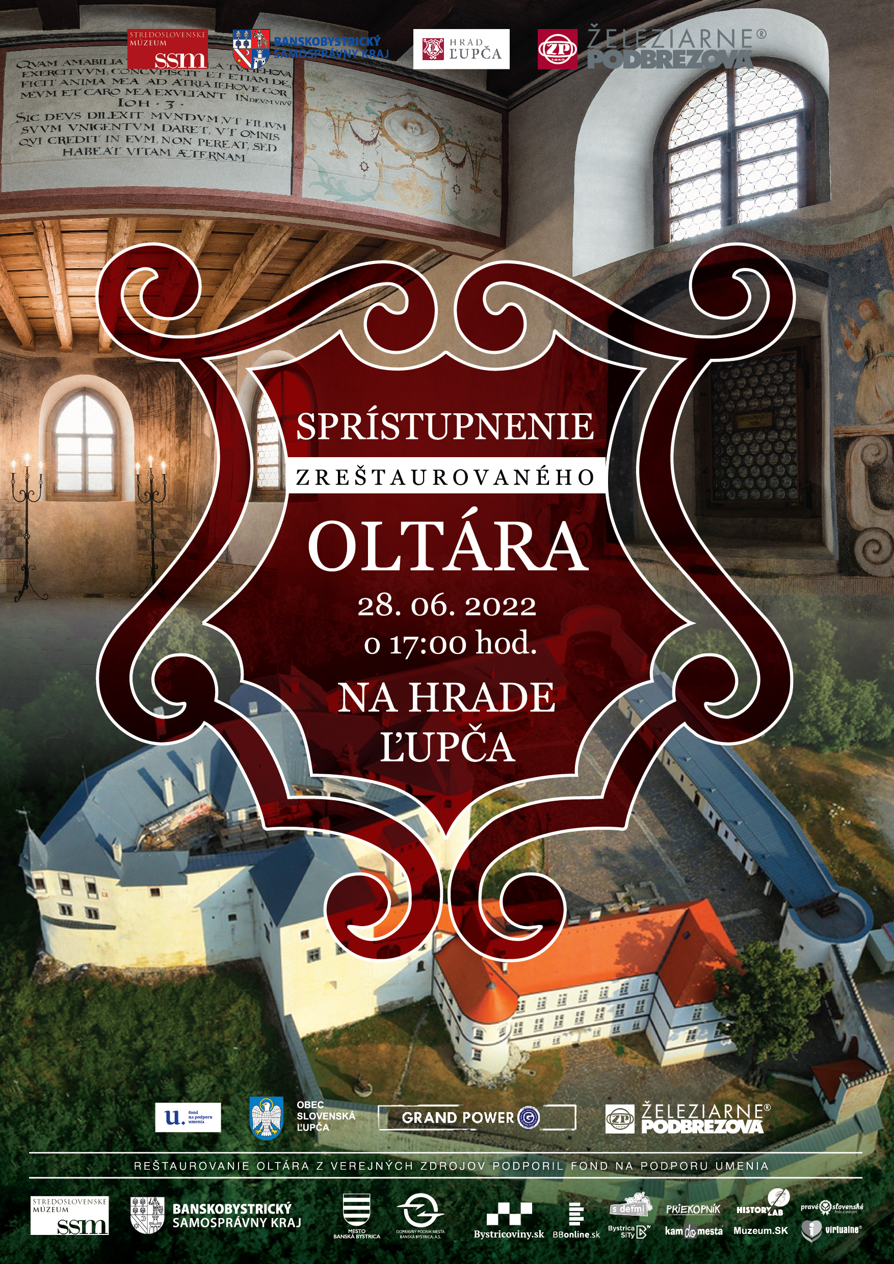 Slávnostné sprístupnenie zreštaurovaného Oltára Očisťovania Panny Márie sa uskutoční dňa 28.6. o 17:00 na Hrade Ľupča v Slovenskej Ľupči. Hrad Ľupča tak ponúkne návštevníkom zreštaurovaný historický skvost, ktorý sa ako jeden z mála zachoval z autentického vybavenia hradu. Príbeh jeho návratu je mimoriadne zaujímavý a pre návštevníkov bude atraktívnym prvkom, nielen letnej sezóny 2022.