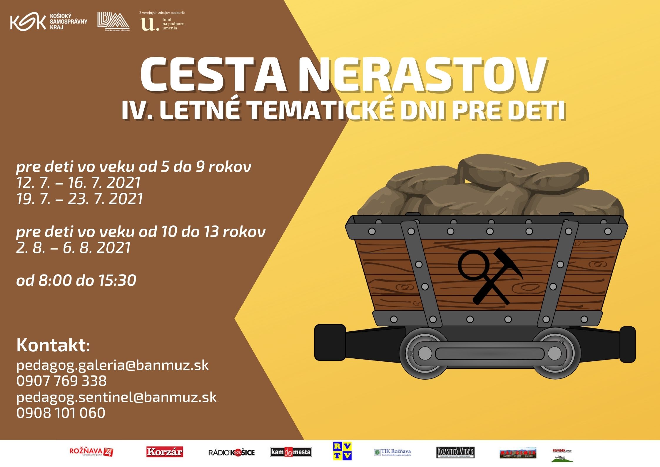 Letné tematické dni pre deti v troch turnusoch. Termíny: Pre deti vo veku 5 - 9 rokov: 12. 7. 2021 – 16. 7. 2021 19.7.2021 – 23.7.2021 Pre deti vo veku 10 - 13 rokov: 2.8. 2021 – 6.8. 2021 Program: - workshopy, kde bude možnosť vyskúšať interaktívne prvky: banský vozík s traťou, korýtko na rudu, kladkostroj, stôl so spoločenskými hrami, labyrint, - aktivity v múzeu (komentované prehliadky, tvorivé dielne, súťaže, interaktívne hry); - exkurzie k banským technickým pamiatkam a
