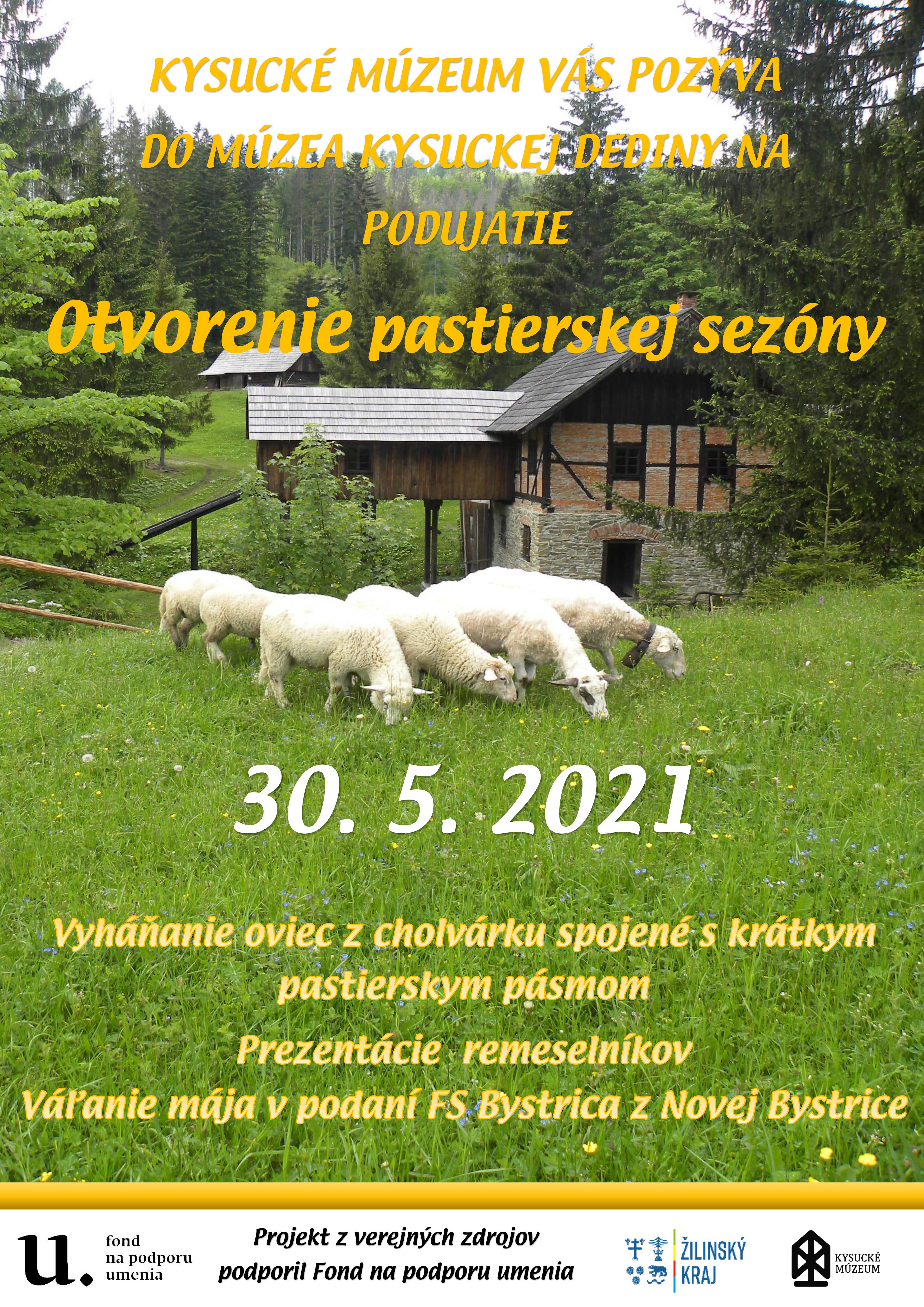 Kysucké múzeum pozýva do Múzea kysuckej dediny vo Vychylovke dňa 30. mája 2021 na podujatie Otvorenie pastierskej sezóny. Projekt, ktorý z verejných zdrojov podporil Fond na podporu umenia, prezentuje ovčiarstvo a bačovské remeslo.