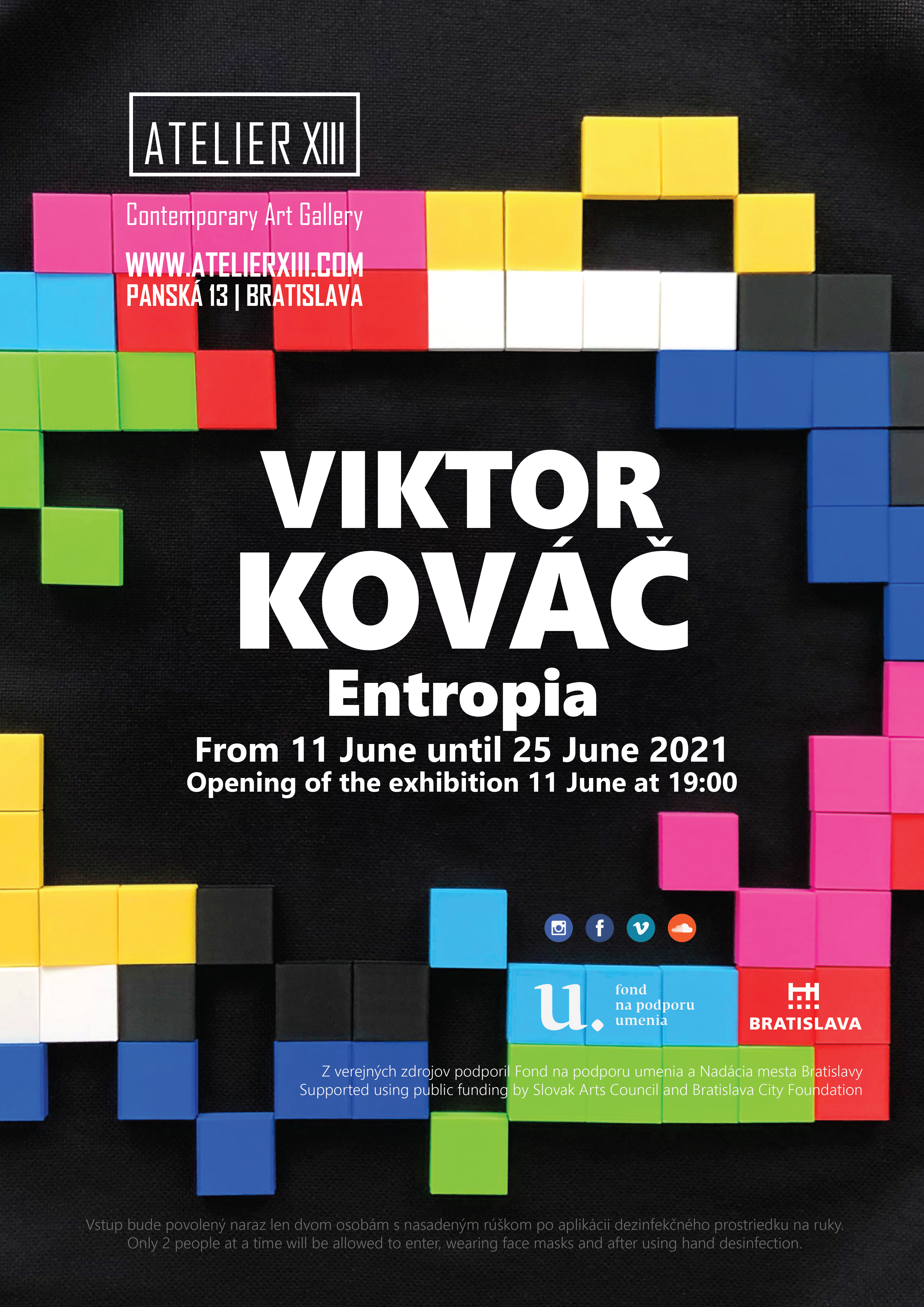 V piatok 11. 6. 2021 od 19:00 do 22:00 vás radi privítame na otvorení výstavy diel Viktora Kováča s názvom Entropia. Výstava nebude otvorená úvodným slovom, preto môžete prísť kedykoľvek v uvedenom čase. Vstup bude povolený naraz len dvom osobám s nasadeným rúškom po aplikácii dezinfekčného prostriedku na ruky.