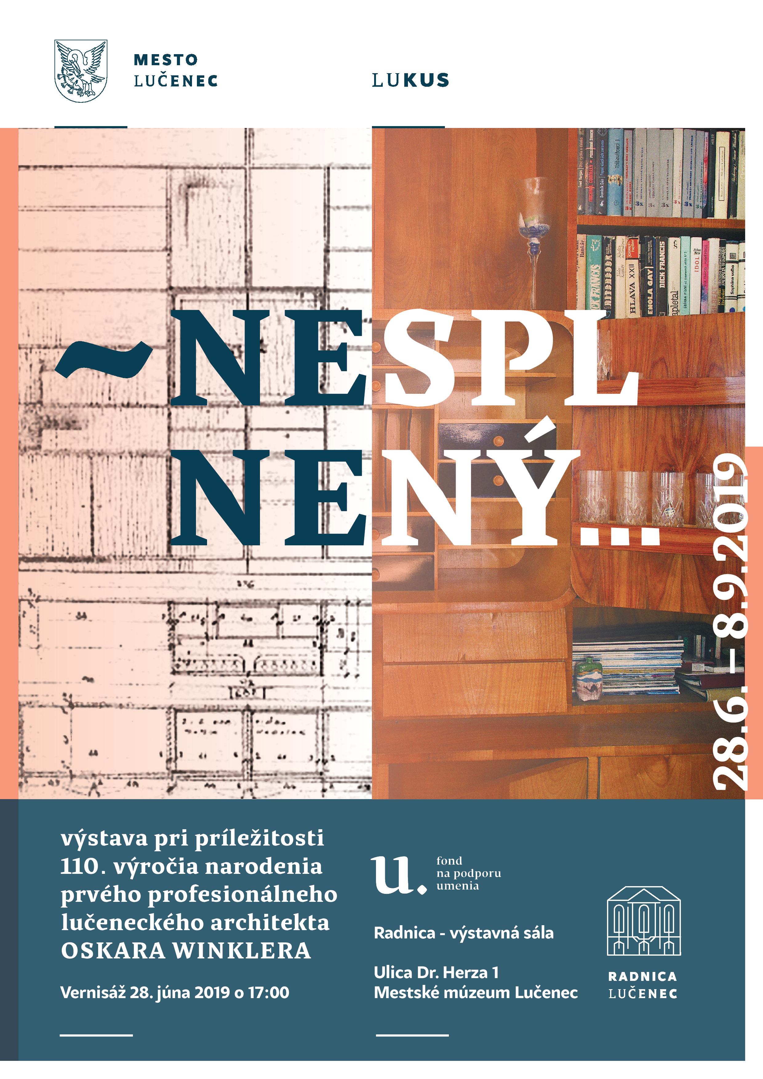 Mestské múzeum Lučenec a Mesto Lučenec Vás pozýva na výstavu „NESPLNENÝ...,“ ktorú usporadúva pri príležitosti 110. výročia narodenia prvého profesionálneho architekta v meste Lučenec Oskara Winklera. Jeho meno je spojené s realizáciou prvých funkcionalistických polyfunkčných mestských domov v Lučenci. Výstavu slávnostne otvoríme dňa 28. júna 2019 (v piatok) o 17,00 hod. vo výstavných priestorov múzea.