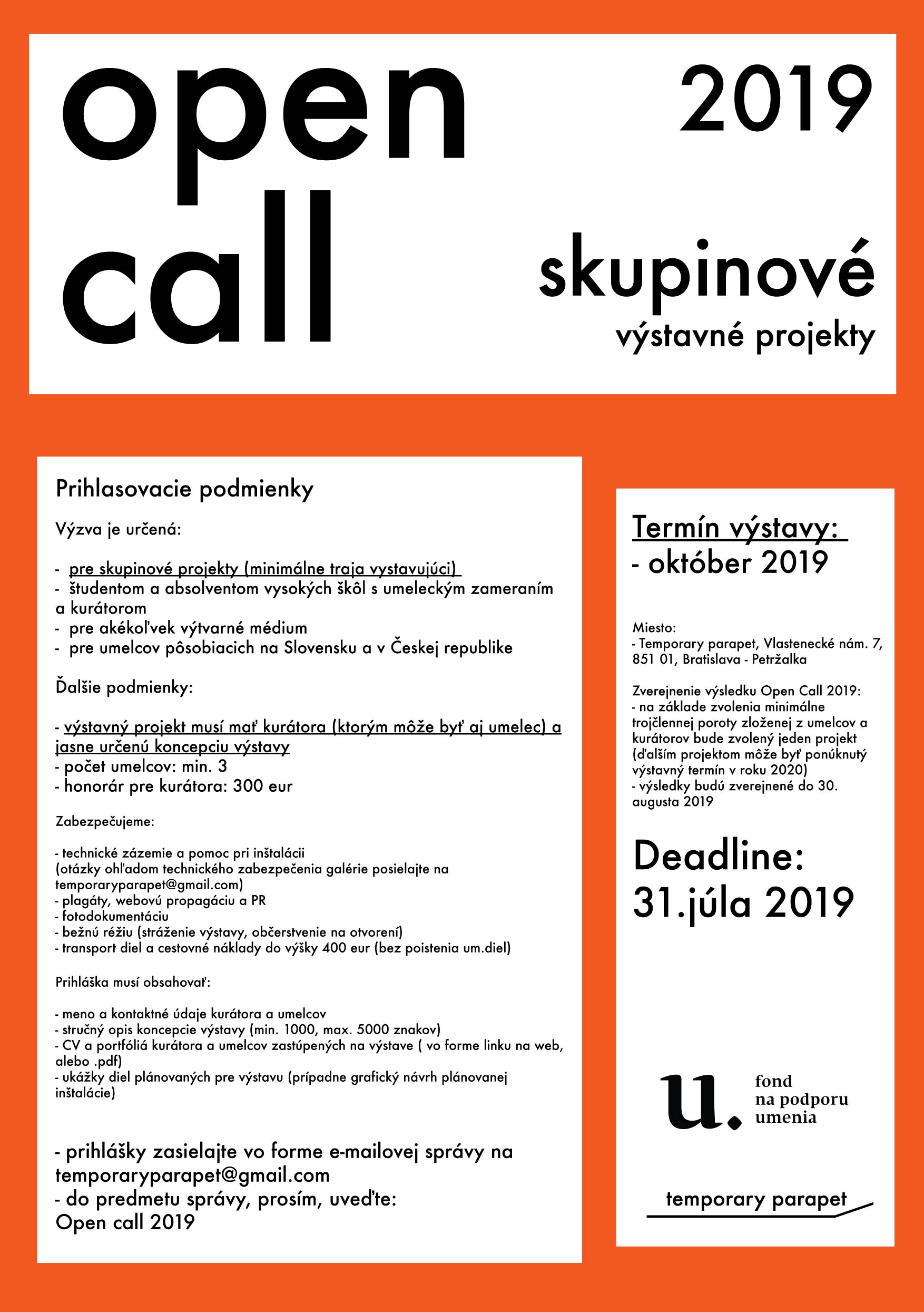 Temporary Parapet - Open call 2019 / otvorená výzva pre skupinové výstavné projekty s kurátorskou koncepciou na výstavný termín v októbri 2019