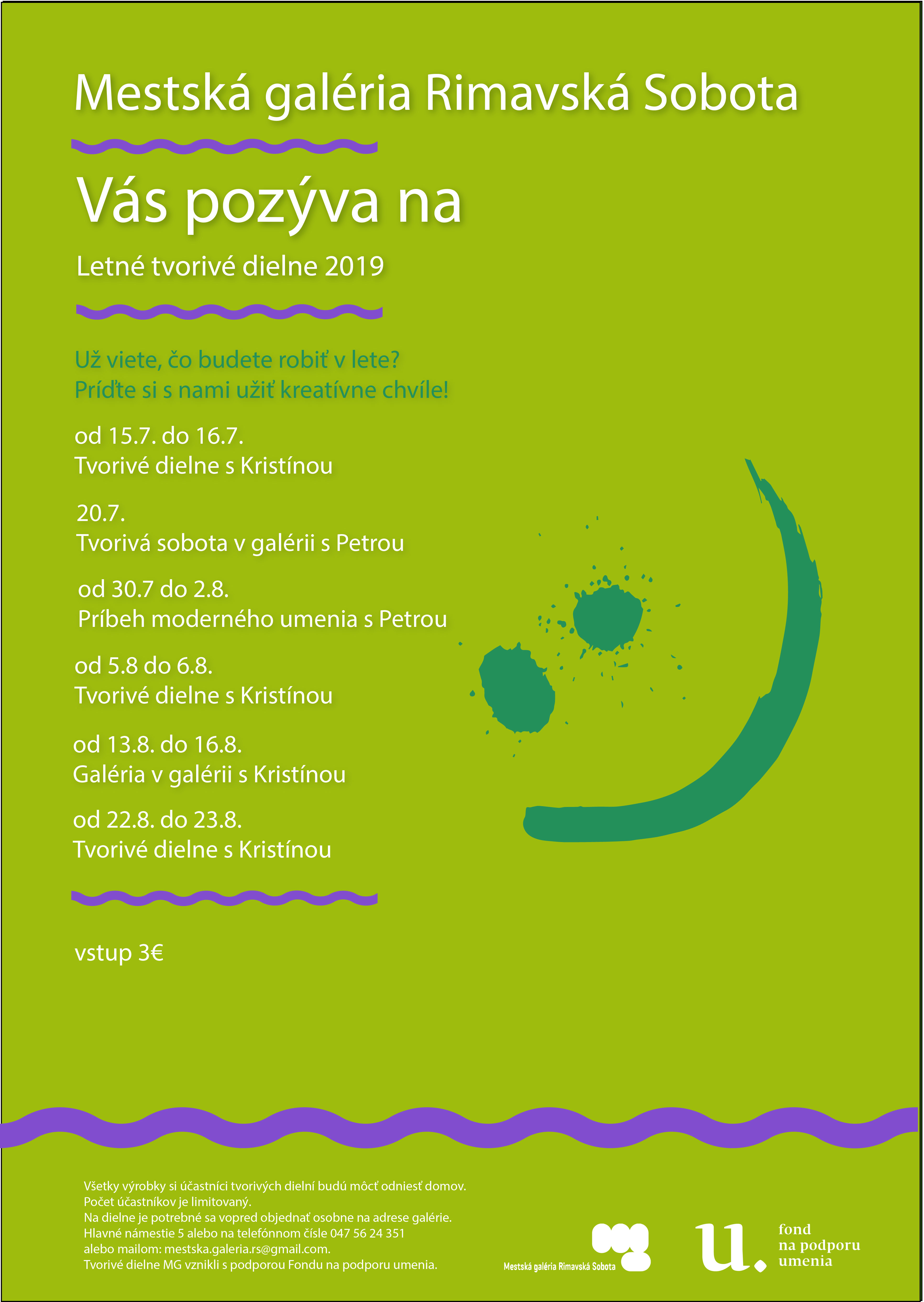 Program tvorivých dielní na leto 2019 v Mestskej galérii